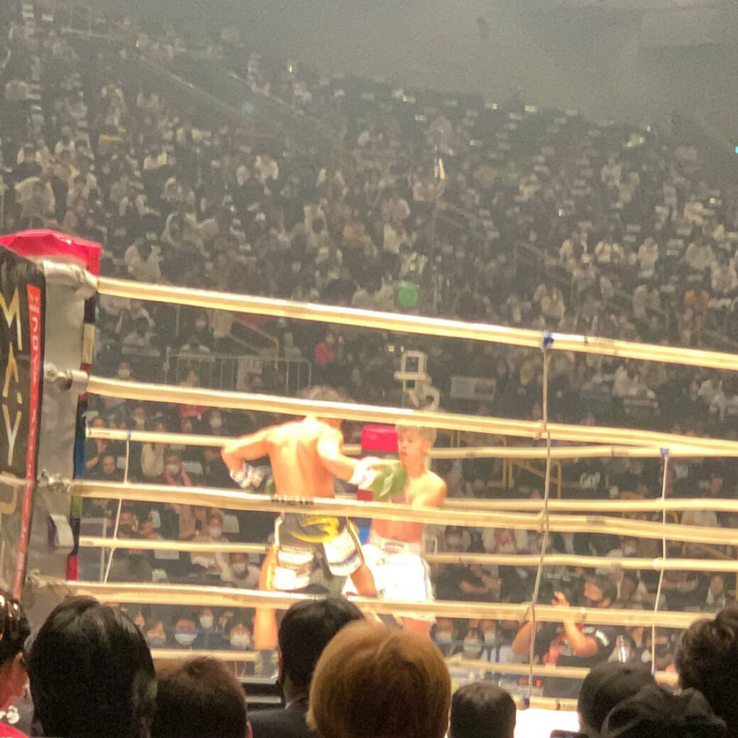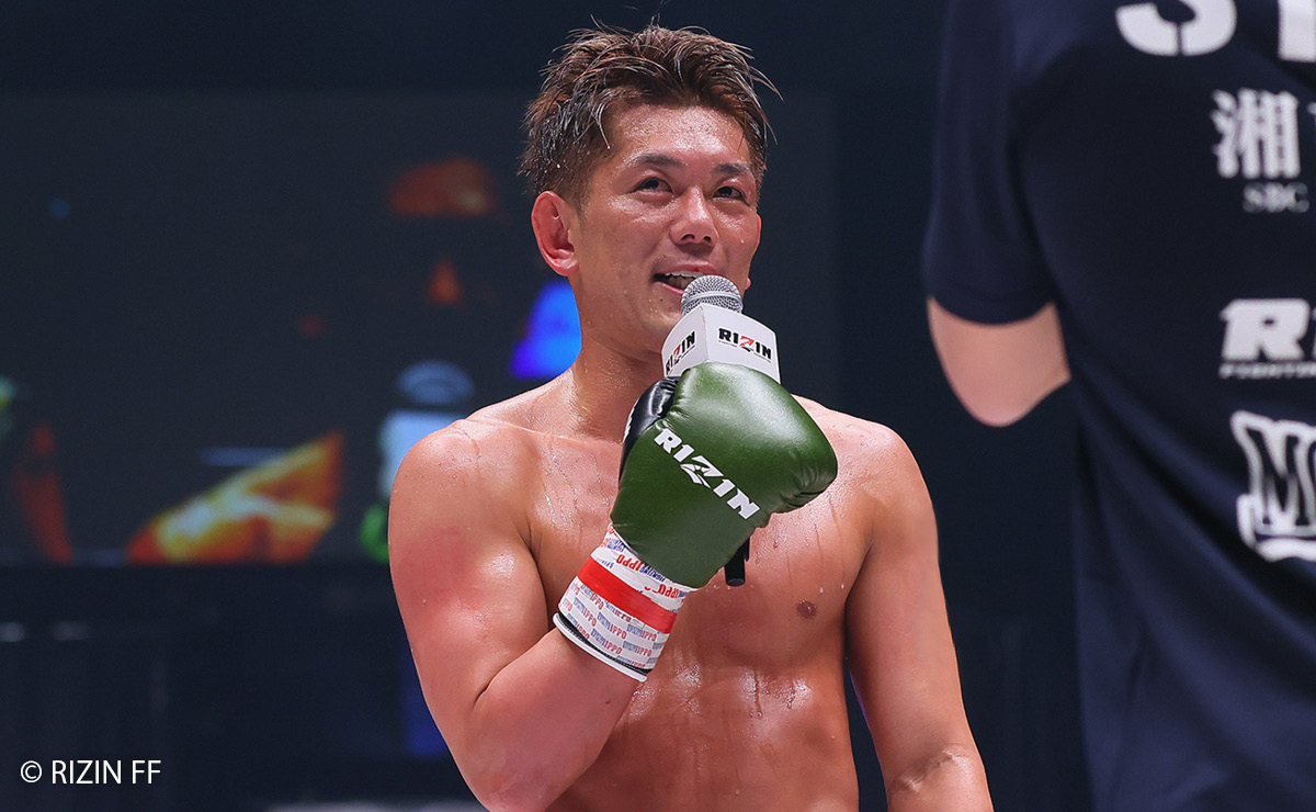 「寝起きなんで許してください。1年間、梅野選手、梅野選手のファン、自分の頭で苦しめてしまってすみませんでした。ちょっと冬眠から明けたら勝っちゃうから、またアンチが湧くな。冗談抜きで、自分がリングに上がれてるのは支えてくれてる仲間、皇治軍団です。みんな愛してます、ありがとう。お前らがめちゃくちゃ好きです。