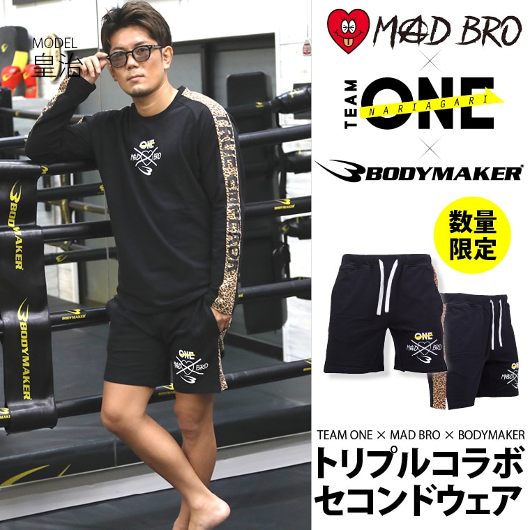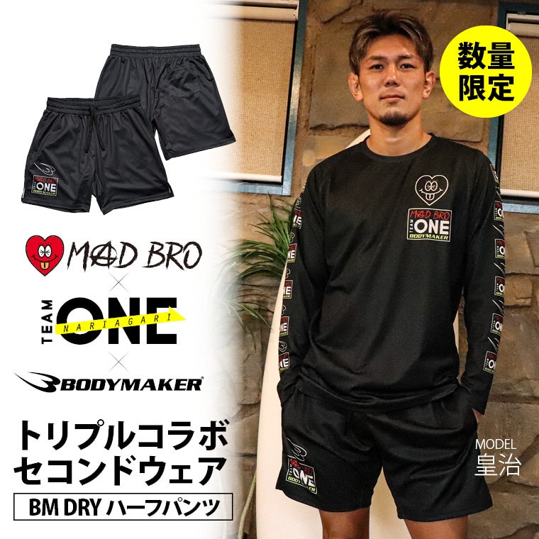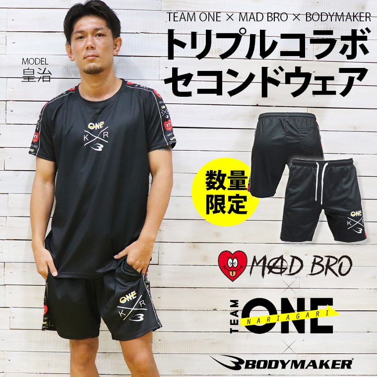「MAD BRO」×「TEAM ONE」×「BODYMAKER」 トリプルコラボ セコンドウエア DRY ハーフパンツ