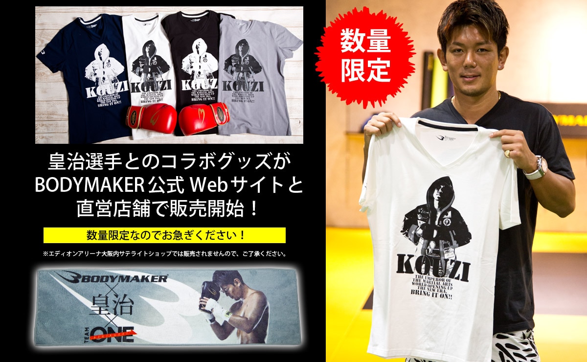 大好評につき、皇治選手とのコラボグッズがBODYMAKER公式Webサイトと直営店舗で販売開始!