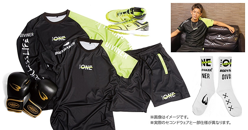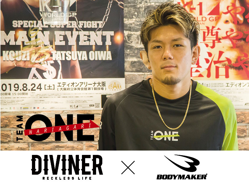 2019年BODYMAKER(ボディメーカー)のメインキャラクター・皇治選手が所属するTEAM ONE(チームワン)のセコンドウェアの製作にあたり、同じ大阪のアパレルブランドであるDIVINER(ディバイナー)との共同で、「TEAM ONE×DIVINER×BODYMAKERのトリプルコラボとしてかっこよさを前面に押し出したスポーツウェアをデザインし2019年10月9日より予約販売を開始します。 ブレない男らしいスタイルを発信し続けているアパレルブランドDIVINER(ディバイナー)はK-1の城戸康裕選手がCREATIVE