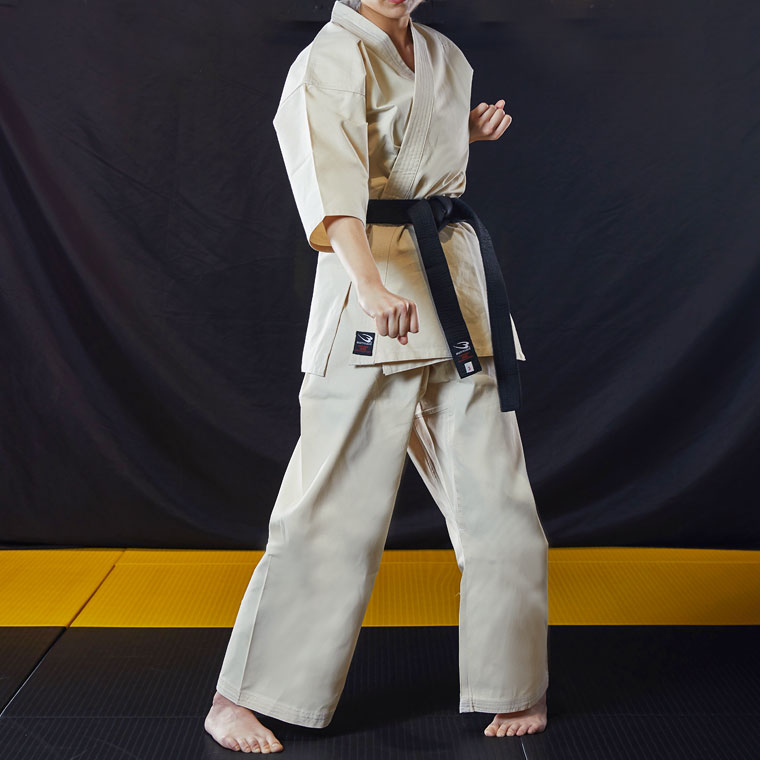 空手家の深いこだわりに応える人気の未晒し仕様。帆布の特徴である丈夫さと柔らかさを兼ねそなえていますので、ビギナーから有段者までご愛着頂いています。
