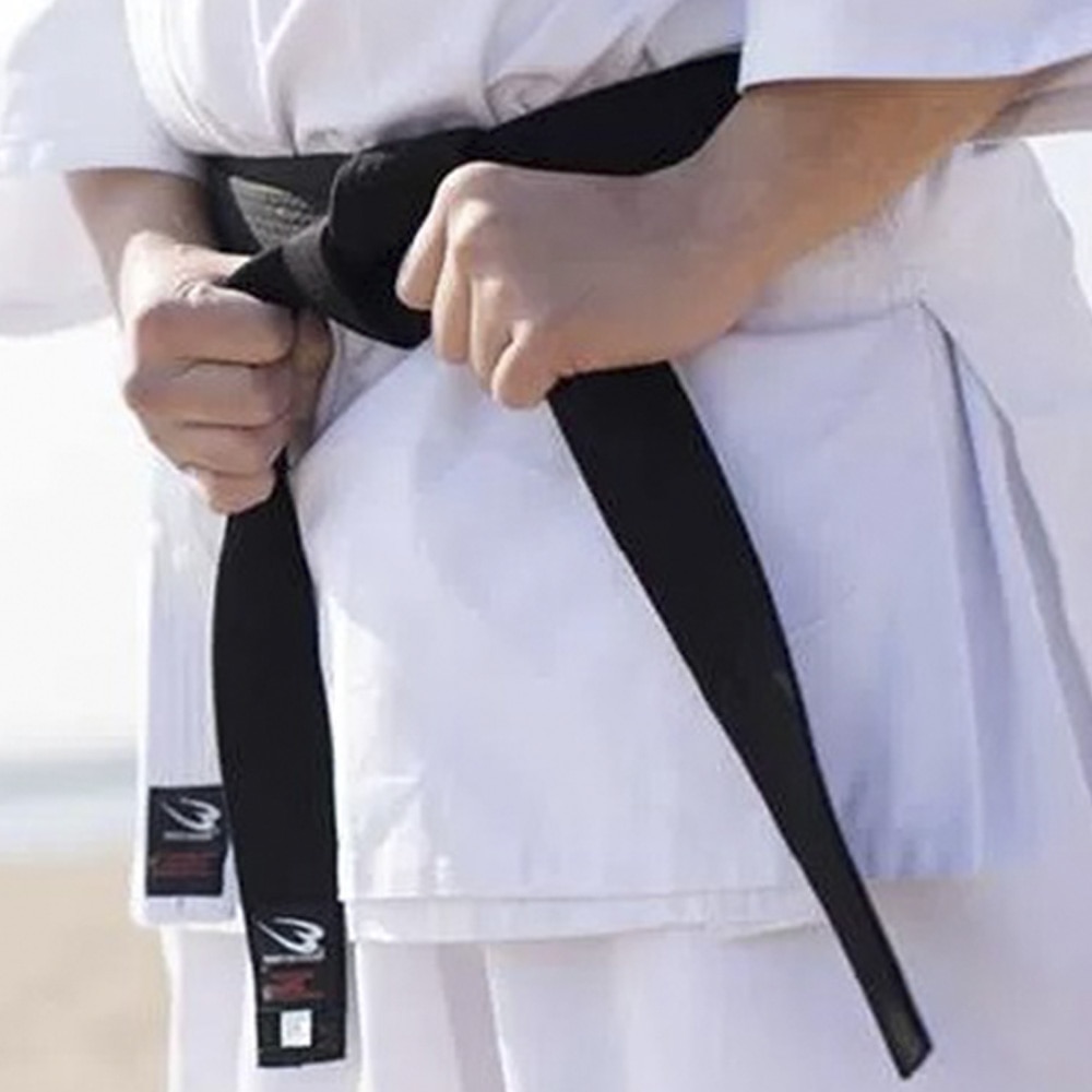 取り付けは簡単な面テープ。空手衣の帯の緩みをなくし、帯がほどけるのを防ぎます。練習や試合につきものの激しい動きにも安心です。