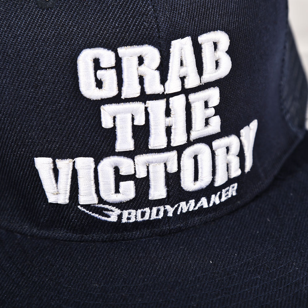 フラットバイザーキャップのコットンツイル素材で仕上げた、ベーシックタイプのキャップです。フロントに立体感のある厚盛り刺繍の「GRAB THE VICTORY」ロゴを配置したシンプルなデザイン。キャップの後ろがスナップで留めるアジャスタブルな仕様となっており、簡単にサイズ調節が出来ます。コットン素材なので、年間通して着用できるのがウレシイ!シンプルなデザインは、様々なシーン・スタイル・コーディネートと相性抜群です。