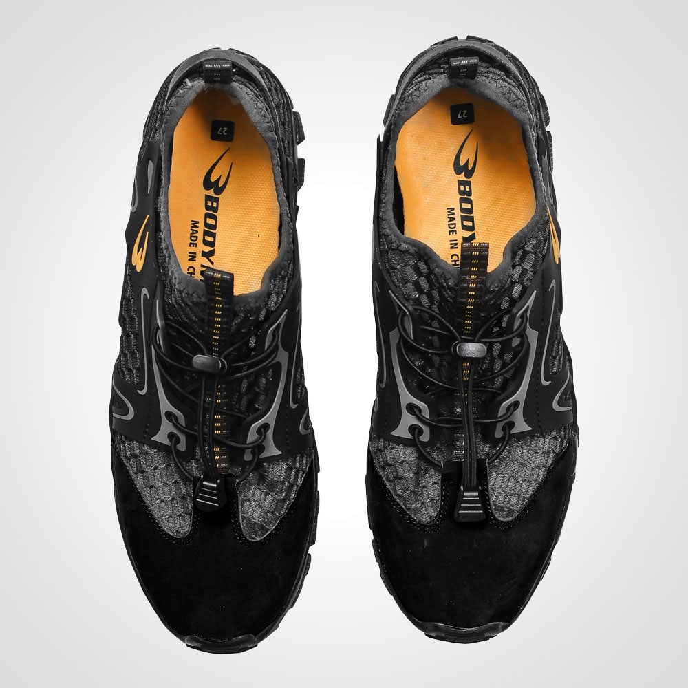 アッパー全体は、独自のハニカム構造の編地で柔らかいメッシュ素材生地を採用。肌に優しくて、優れた伸縮性と通気性。長時間履いても快適。つま先部分は合成皮革でアッパー強度を向上させました。
