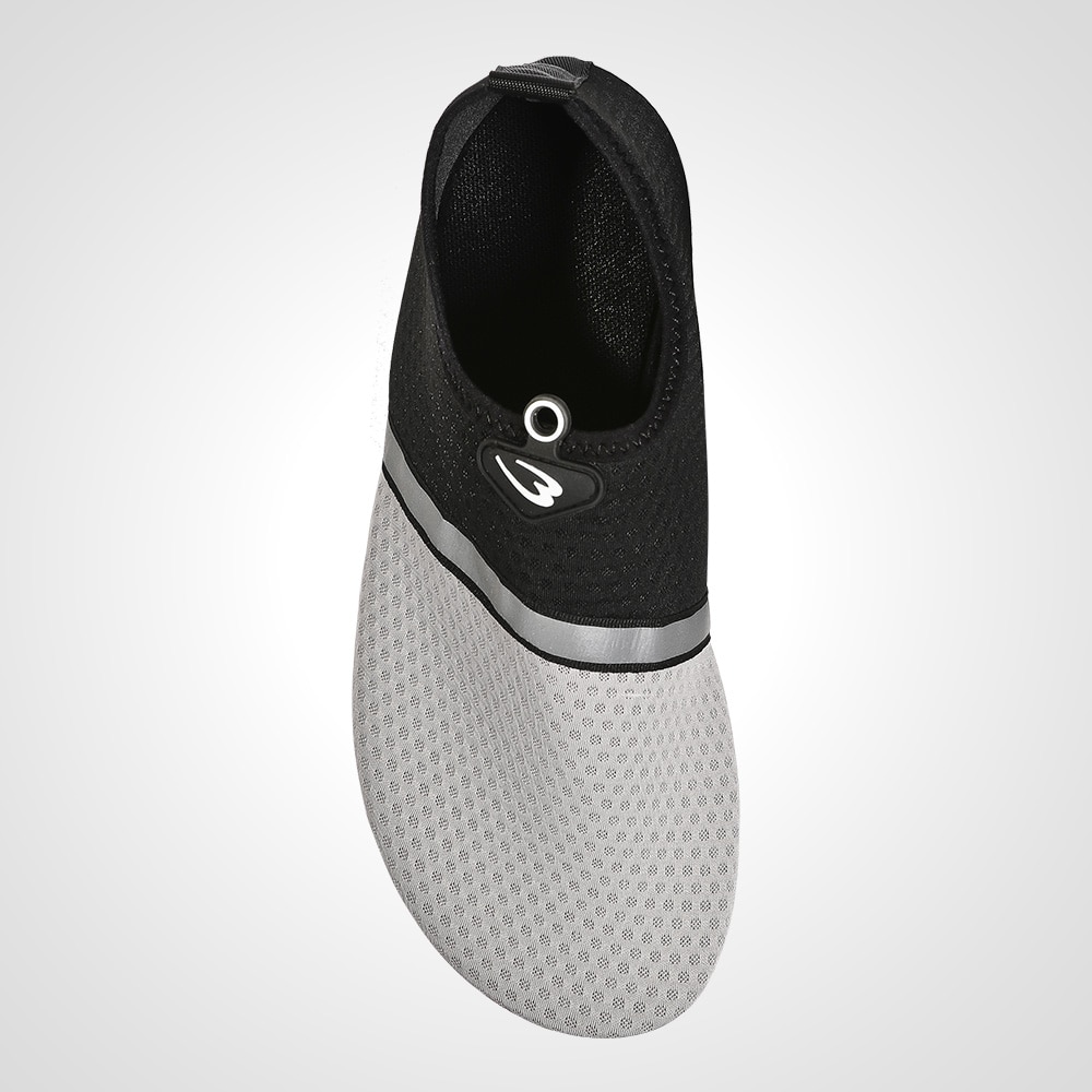 【ゴム紐付き】アッパー部分はゴム紐のスピンドルでアッパー部分のサイズを微調整。よりフィットして快適な履き心地をもたらす。また、履き口にはテープが付いており簡単に着脱することもできます。