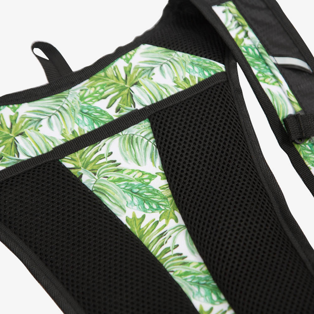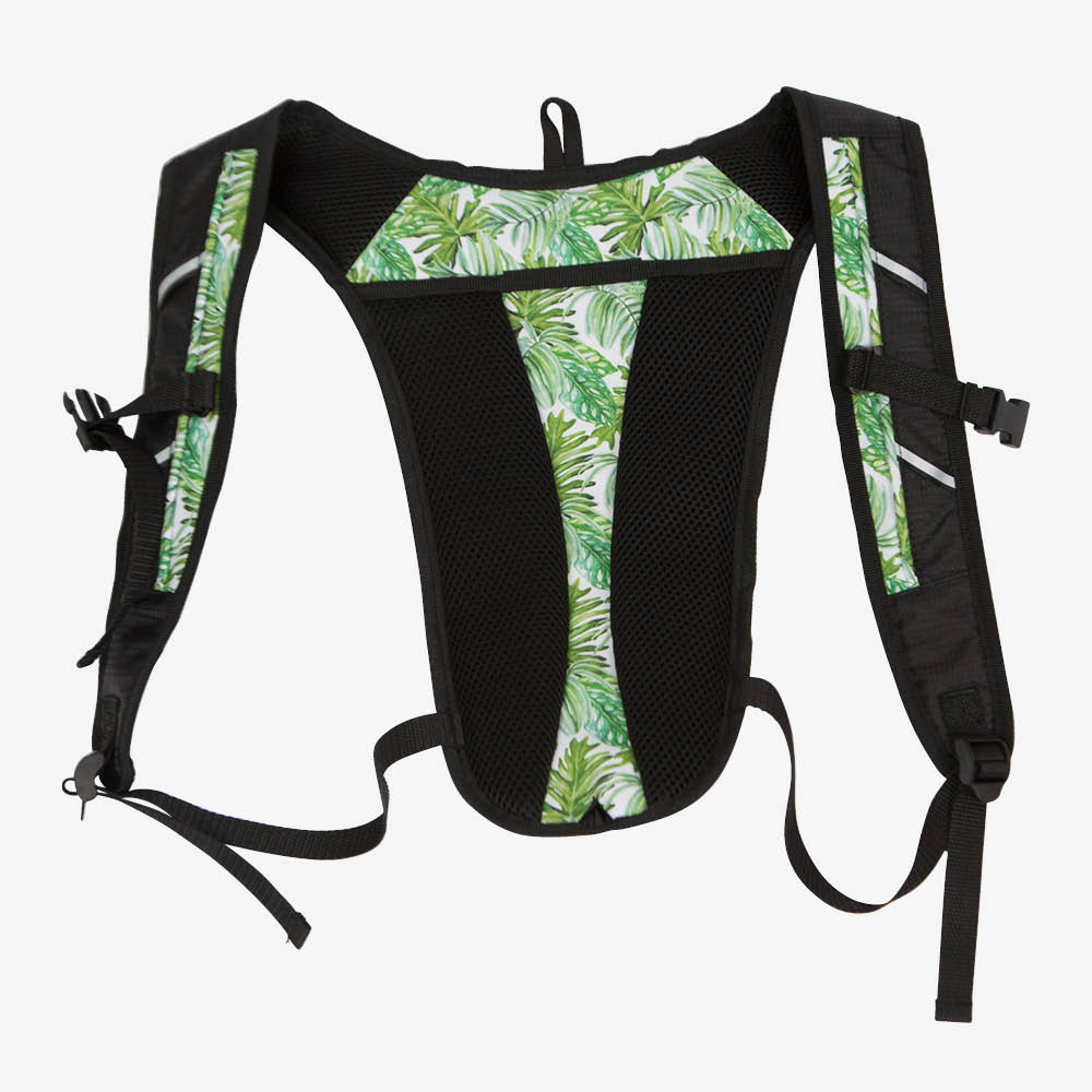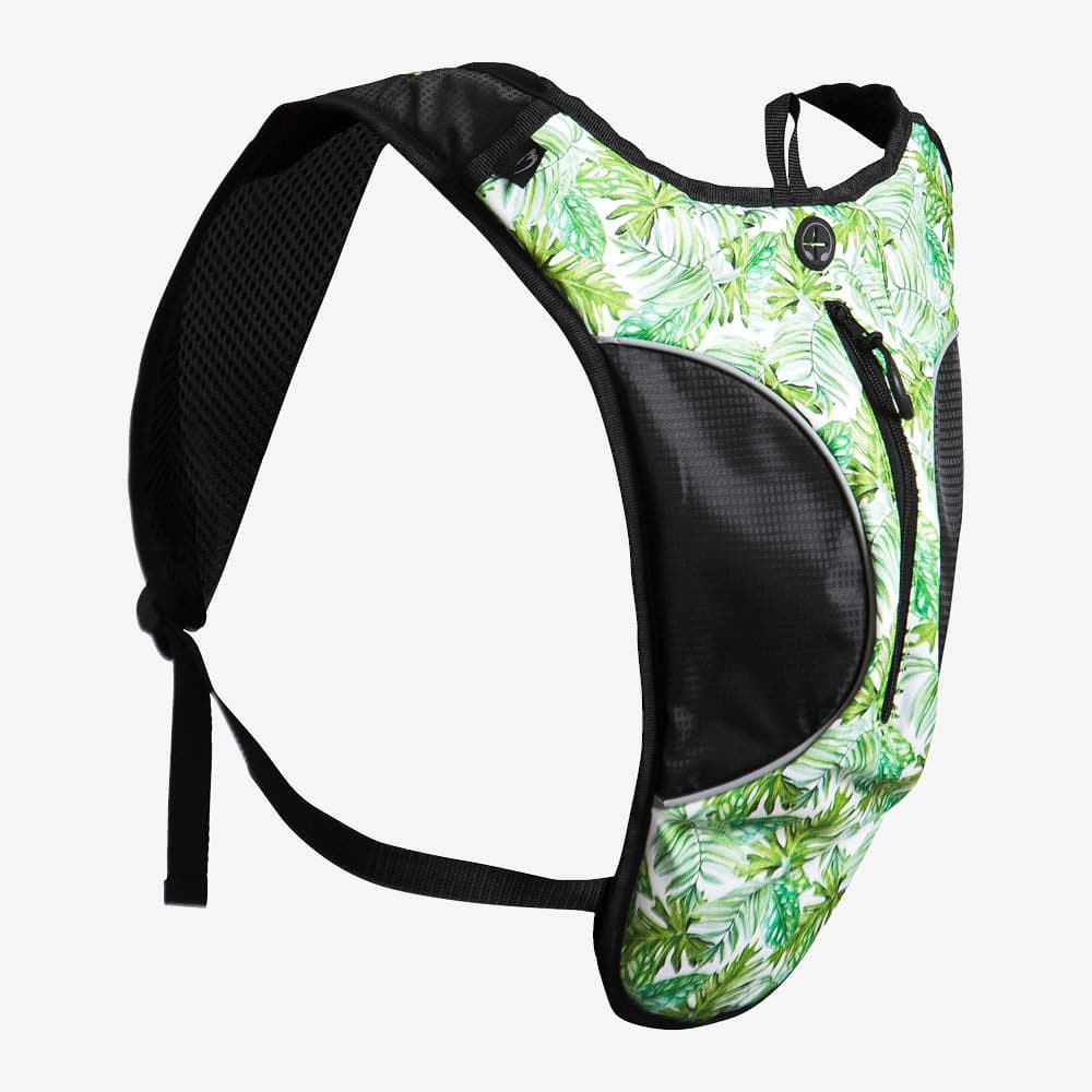 ランニングバッグにプリント柄が登場。スポーツシーンをカラフルに彩ります。カーブを描いたような形状が装着時、背中にフィットし一体感を味わえます。背面やショルダーに弾力性の高いメッシュ素材を使用し熱を素早く放出します、サラッとした肌触りで汗によるベタつきを防ぎます。正面中央に20cmのファスナー開閉。内側にはメッシュポケットがあります。身の回りの小物やタオルなどの収納が可能。正面切替ラインにリフレクター生地を使用したパイピングテープを配し、夜間の視認性を確保しています。ナイトランにもお使いいただけます。背中側にもポケットを付けています。収納口に面テープをたたき付けて中身の飛び出しを防ぎます。背中やショルダーにクッションパットを採用して背中への負担を軽減しています。ベルト部分にも4箇所にリフテクターテープをたたき付けています。胸部分の固定ベルト付いて安定感も抜群。マラソン、サイクリング、ハイキング、ジョギング、登山等に最適です。