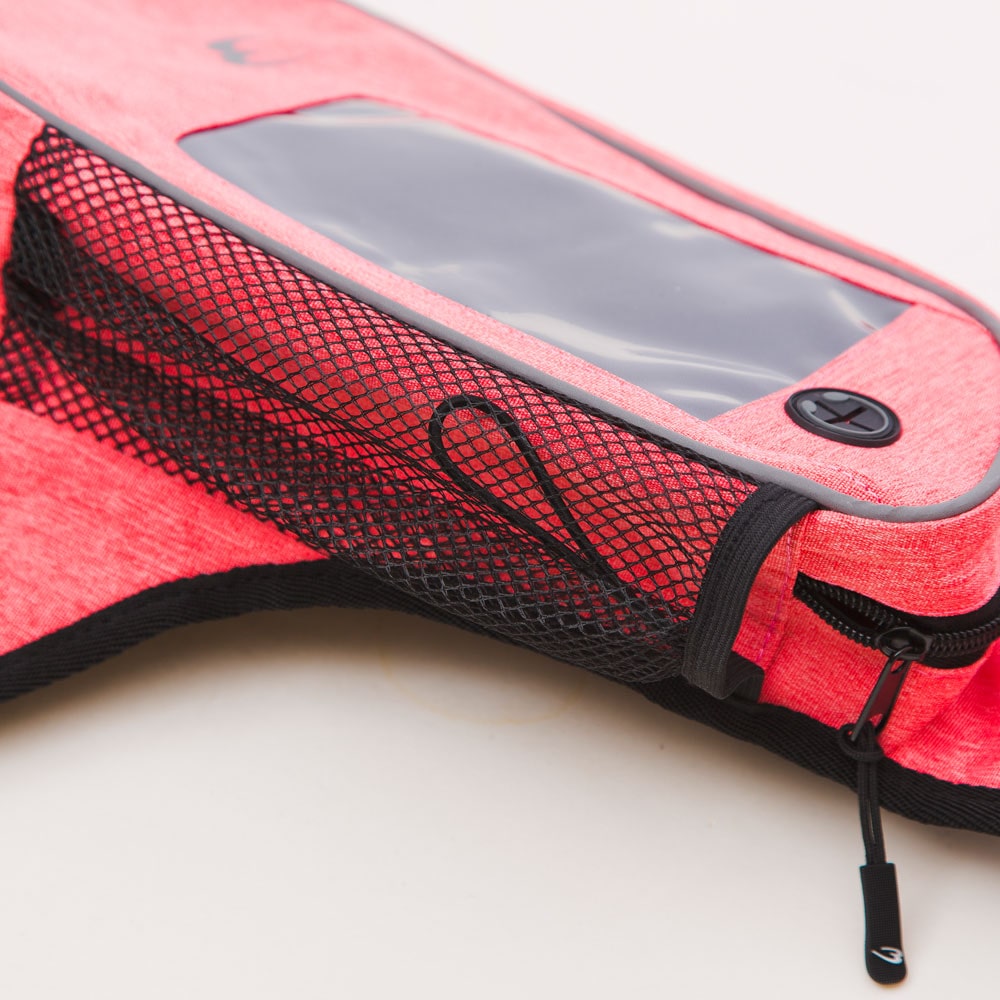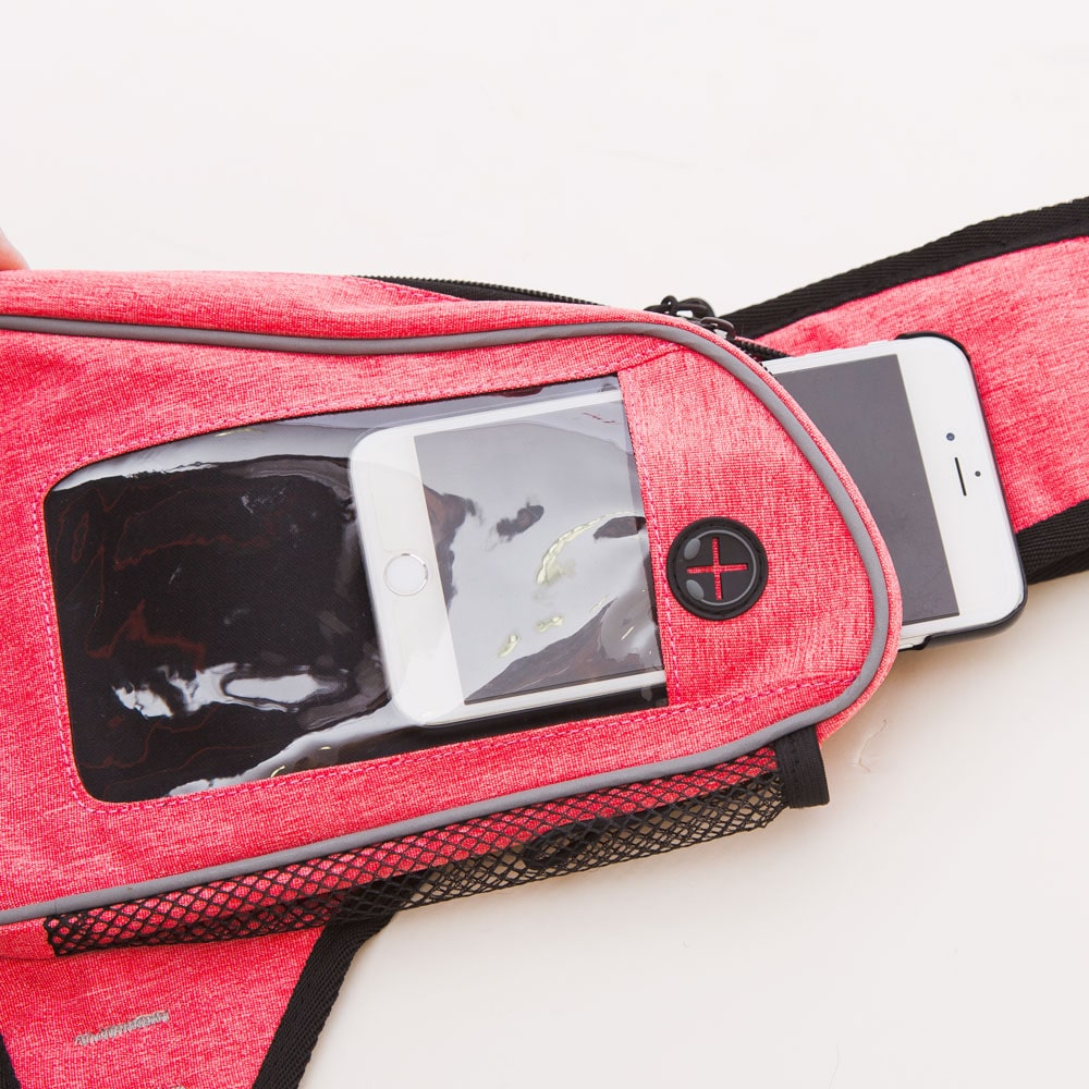 ショルダータイプのランニングバッグにプリント柄が登場。ランニングシーンを華やかに演出します。ショルダーとウエストでの3点固定式なのでジョギング中のぶらつきを防ぎます。本体裏の身体に接する部分はクッション性のあるメッシュ生地を使用。サラッとした肌触りで汗によるベタつきを防ぎます。iPhoneなどのスマホ操作対応 イヤホンの専用穴が有り機能性も充実しています。内側に鍵などを吊すことができるキーホルダーを付けています。本体の縁をリフレクターテープでパイピングし、夜間使用の際の安全性を考慮しています。約9cmx15cmのスマートフォン用操作窓があり外側から直接操作が可能です。サイドのメッシュポケットには500mlのペットボトルが収納できます。飛び出しを防ぐゴムリンク付き。ペットボトルの口にひっかけて使用してください。ランニング、ウォーキングの他に、サイクリング、ロードバイク、釣り、ペットの散歩、フィットネス、ジム用として、多目的にお使いいただけます。