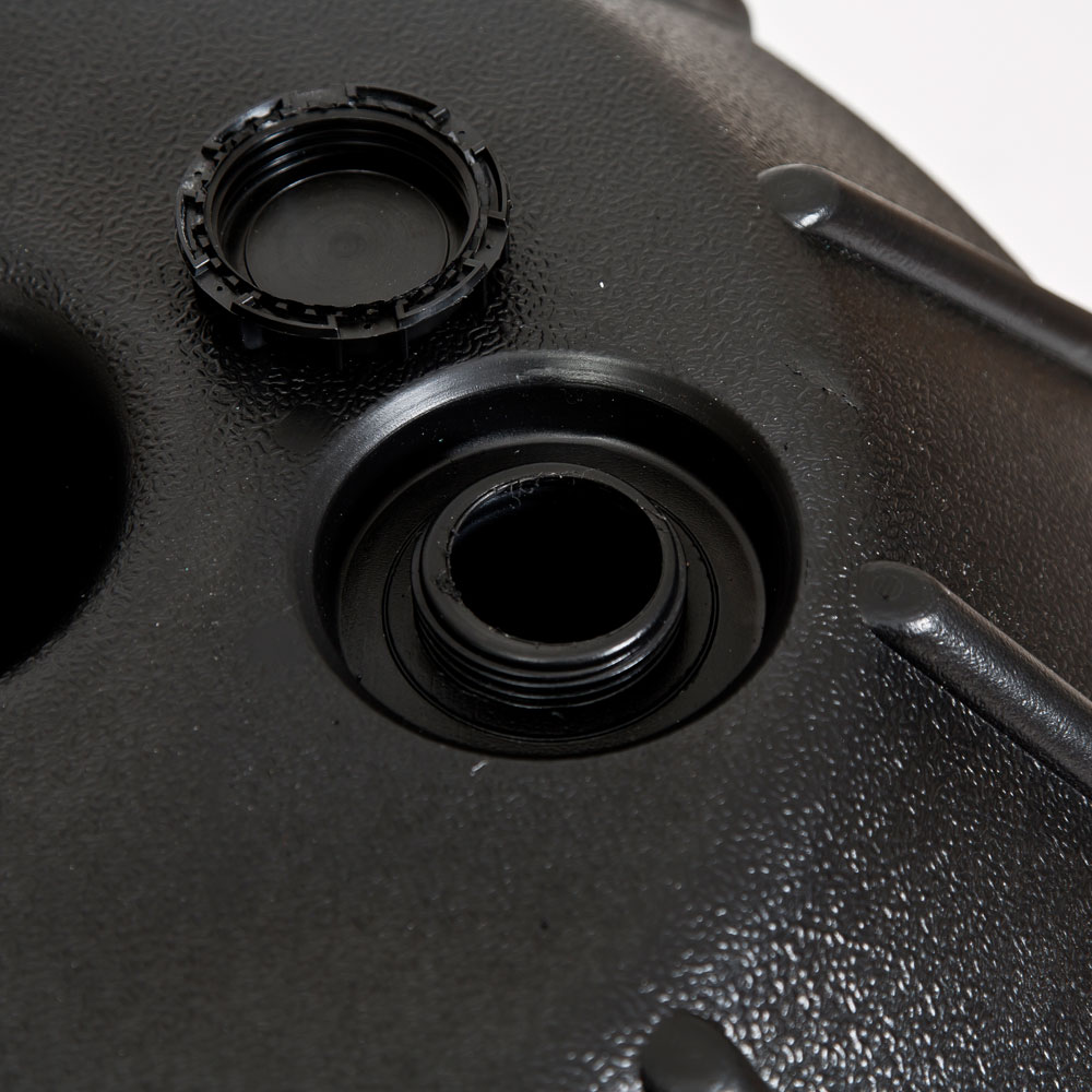 ・バッグ部分に安定感をもたらすタンク。タンクに約60リットル分の砂を入れてご使用ください。ぐらつきを抑えるための仕組みはタンクの裏側にも。