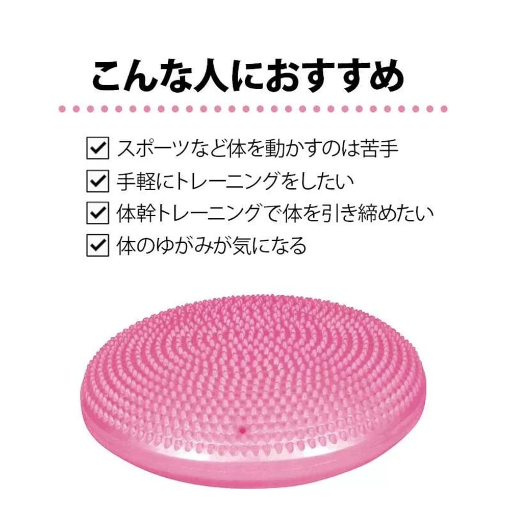 ボールが半球状になり、ドームサイド、ボードサイドの両面が使用できるので多種多様のトレーニングが可能。関節周囲の筋力、柔軟性、反応性を高める総合的なトレーニングが可能。この上でバランスを取ることで、身体のコアを鍛えることもできます。ボードサイドがあるので安定バツグン!!ボールでは上に立つことが難しい方でも、両面ともに安定感があるので上に立つことも可能!!もっと鍛えたい方はこの上でスクワットをすることも出来ます!!使わない時は空気を抜けば収納も簡単です。