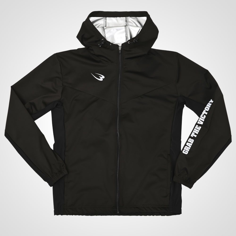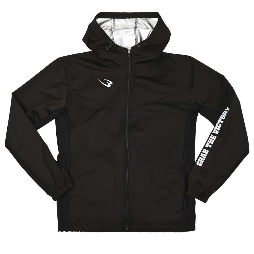 柔らかなストレッチ性のあるポリエステル素材にポリウレタンコーティングを施した素材。高い密閉性。ウエスト、裾のゴム仕様による「短時間で大量発汗」でアスリートの減量や女性のダイエットに人気のサウナスーツです。「抗菌・防臭機能」が加わり、汗による臭いの原因となる菌の繁殖を抑止。衛生面での不安を取り除きました。プリントは反射プリント(リフレクター)を採用。夜間・着用者の安全をサポートします。