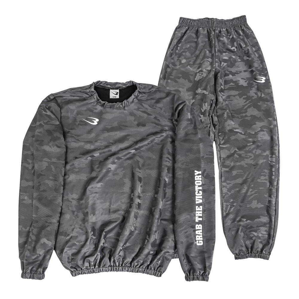 【BURN-SUIT】ポリウレタンコーティングを施した素材で体から発する熱を逃さず閉じ込める!高い保温により効果的な発汗を促します。プルオーバータイプの定番サウナスーツ。首元にはインサイドにゴムを通し、気密性をキープしています。気密性が高い特殊な素材を使用し、体温を外へ逃がさないことで温度が上昇し、発汗効果を促すことが出来ます。従来のサウナスーツ生地からソフトで伸縮性のある生地にバージョンアップしました。首、袖口やパンツの裾部分のゴム仕様により密閉性を高めています。アスリートの減量や女性のダイエットに人気のアイテムです。生地には「抗菌・防臭機能」を施し、汗による臭いの原因となる菌の繁殖を抑止。衛生面での不安を取り除きました。プリントに反射プリント(リフレクター)を採用。夜間・着用者の安全をサポートします。