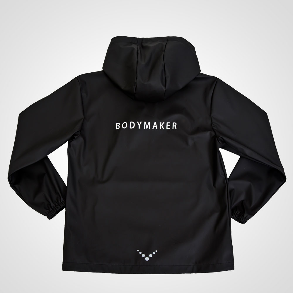 サウナスーツの機能性とデザイン性を兼ね備えたアクティブラインに新しいデザインが登場。着用して運動することで、高い保温により効果的な発汗を促します。従来よりもビッグシルエットでゆったりと着ることが出来ます。ポリウレタンコーティングを施した気密性の高い素材を使用し、運動により上昇した体温を外へ逃がさないことで温度が上昇し、発汗効果を促すことが出来ます。従来のサウナスーツ生地からソフトで伸縮性のある生地にバージョンアップしました。ファスナーや裾の調節紐など着やすさにこだわったジャケット、フード付きで突然雨が降ってきても安心です。アスリートの減量や女性のダイエットに人気のセットアップです。生地には「抗菌・防臭機能」を施し、汗による臭いの原因となる菌の繁殖を抑止。衛生面での不安を取り除きました。背面に反射プリント(リフレクター)を採用。夜間・着用者の安全をサポートします。