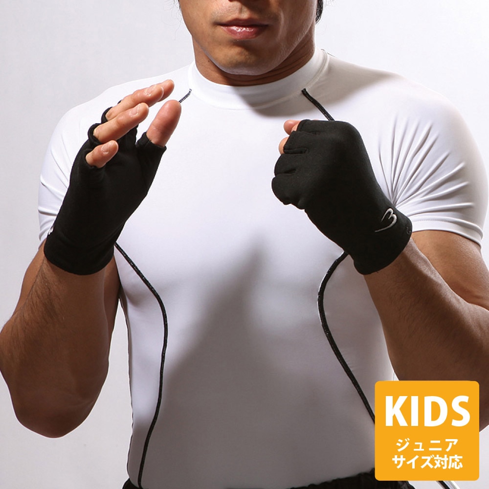 汗をかいた後のグローブははめにくく、不快なものです。インナーグローブは汗を吸い取り、グローブの中をいつも清潔に保ちます。パンチングミットと合わせて使うのも有効です。拳の保護にも役立ちますから、一度使えば、これなしのグローブは考えられなくなるはずです。ジュニアサイズ(jr・子供用)もあります!