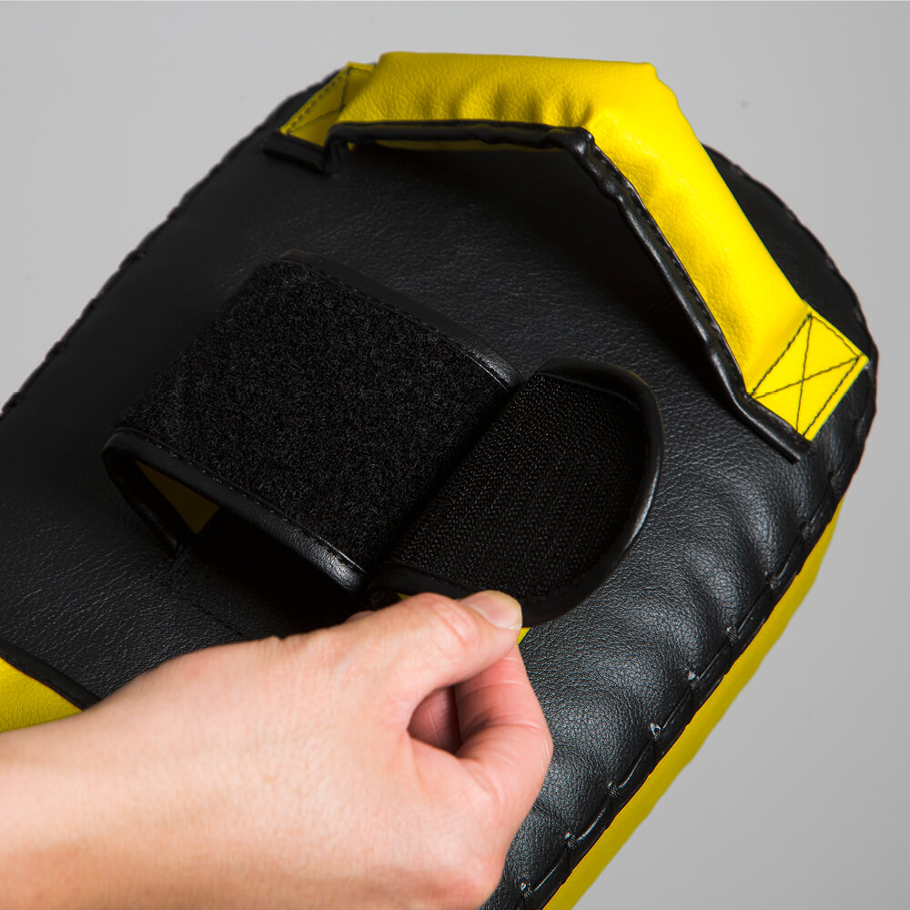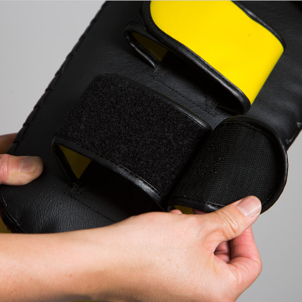 キックだけでなく、パンチも確実にキャッチ。ワイドな打撃面にはなだらかにカーブしているので、コンビネーションの練習がさらにリズミカルになります。面テープで前腕部にしっかりと固定できるので、ハードな練習も安心。耐久性にもこだわったミットです。
