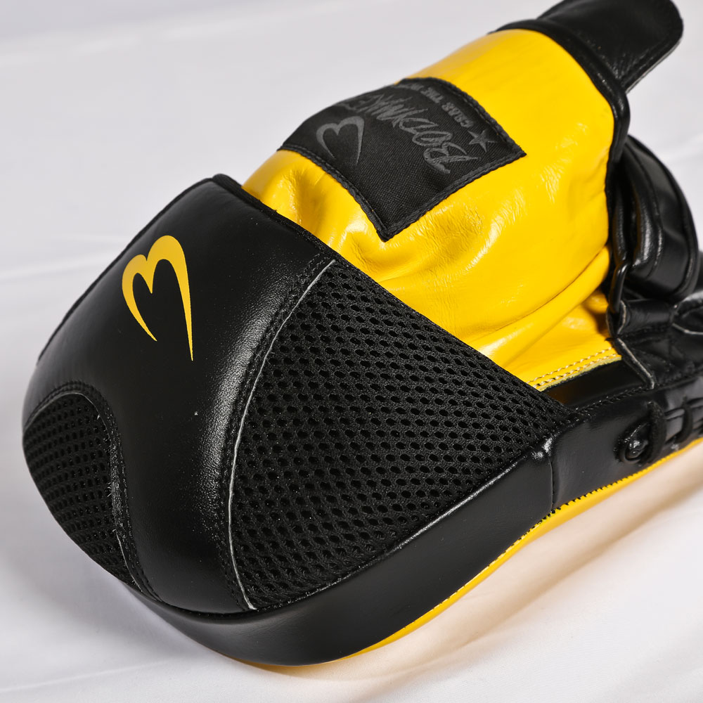 高品質で耐久性に優れた素材を使用。180度ボディを保護するプロテクター。どんな打撃にも対応ができます。トレーナの負担を軽減します。装着ベルトは面ファスナーを使用していますので自分で装着可能な仕様です。光沢のあるゴールドとブラックの限定(LIMITED)モデル。