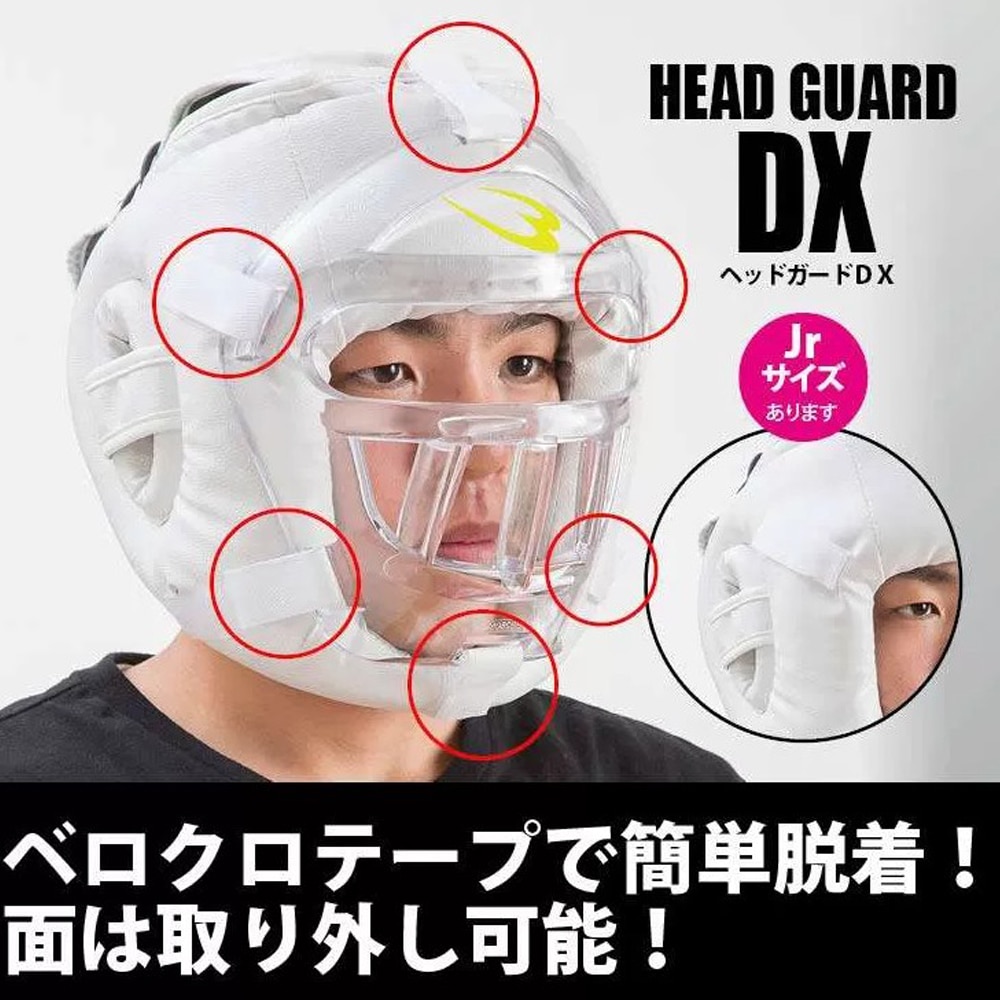 打撃を想定した格闘技用のヘッドガード。面は取り外し可能! 透明パッドで視界も良好