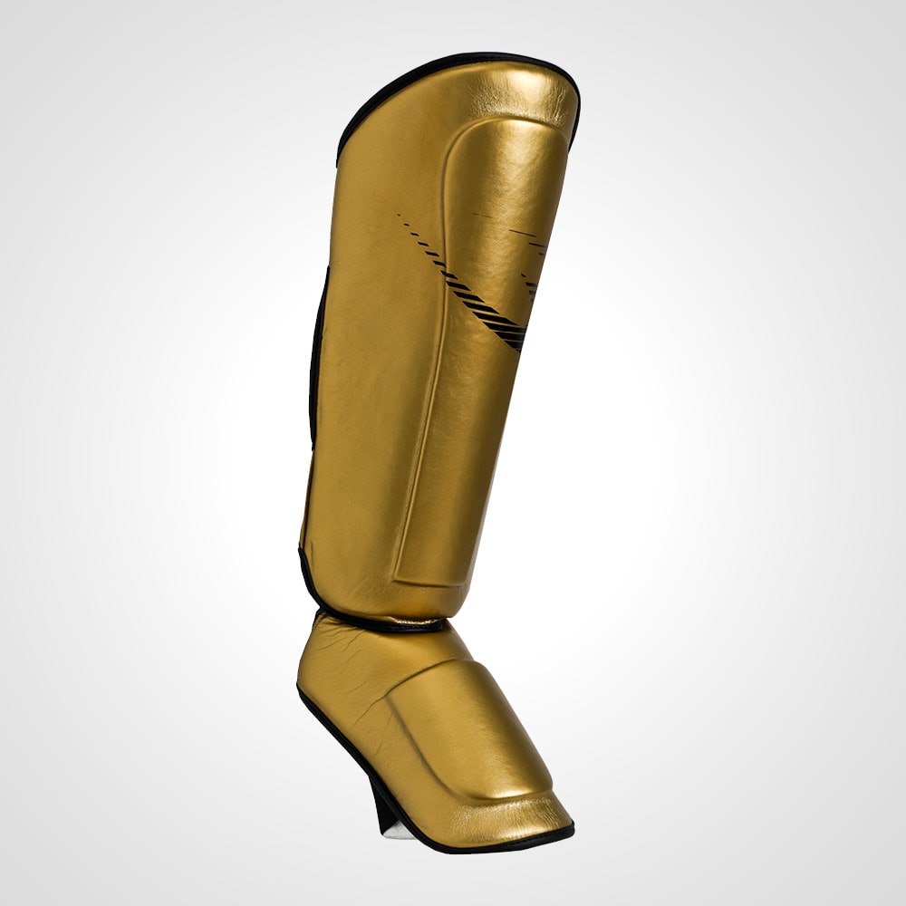 足裏のゴムテープと、ふくらはぎ部分の2本のベルトで装着の容易さと確かなフィット感を実感できるレガース。最高級本革製なので、激しい打撃の応酬を繰り返しても、ずれにくく装着感が保たれます。安全性の高いレガースです。