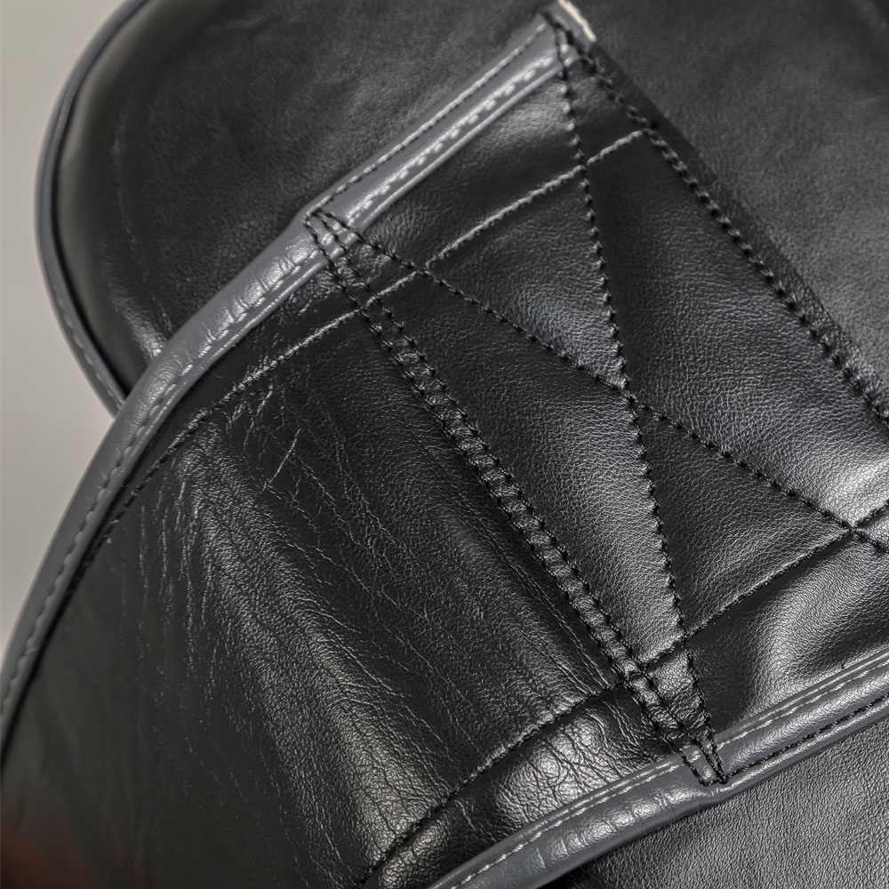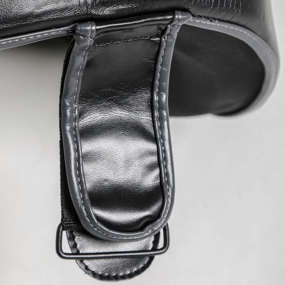 足裏のゴムテープと、ふくらはぎ部分の2本のベルトで装着の容易さと確かなフィット感を実感できるレガース。最高級本革製なので、激しい打撃の応酬を繰り返しても、ずれにくく装着感が保たれます。安全性の高いレガースです。