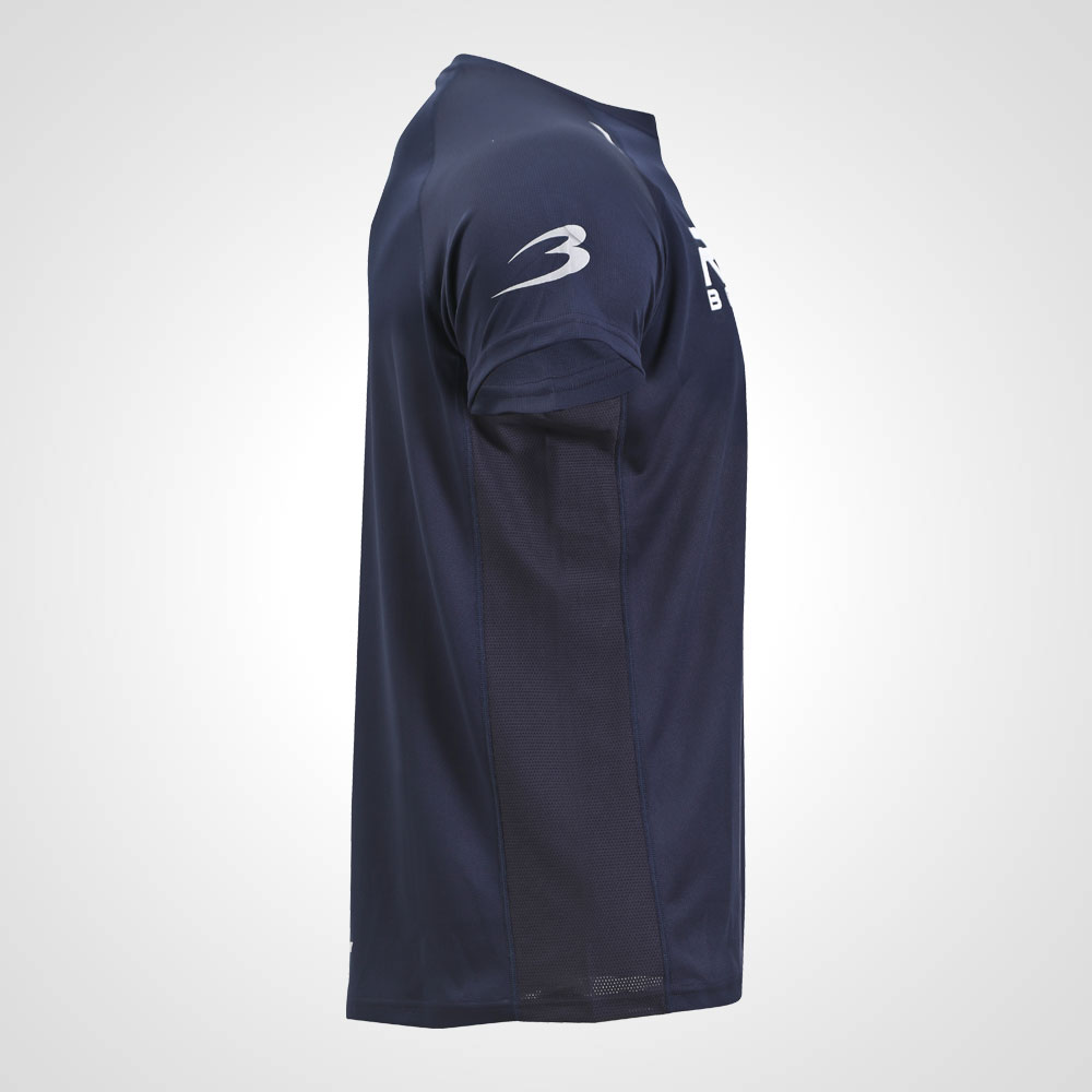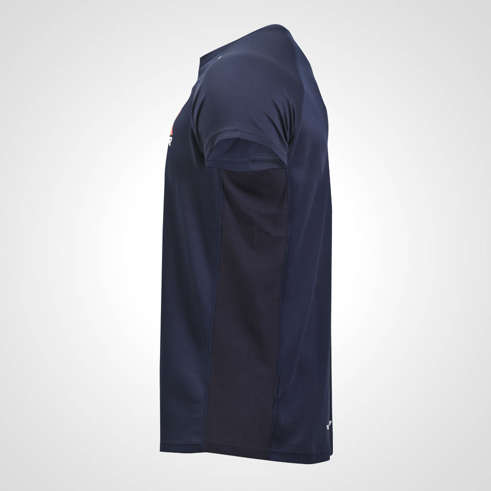 脇から袖下にかけてメッシュ生地を切り替えて通気性にこだわりました。