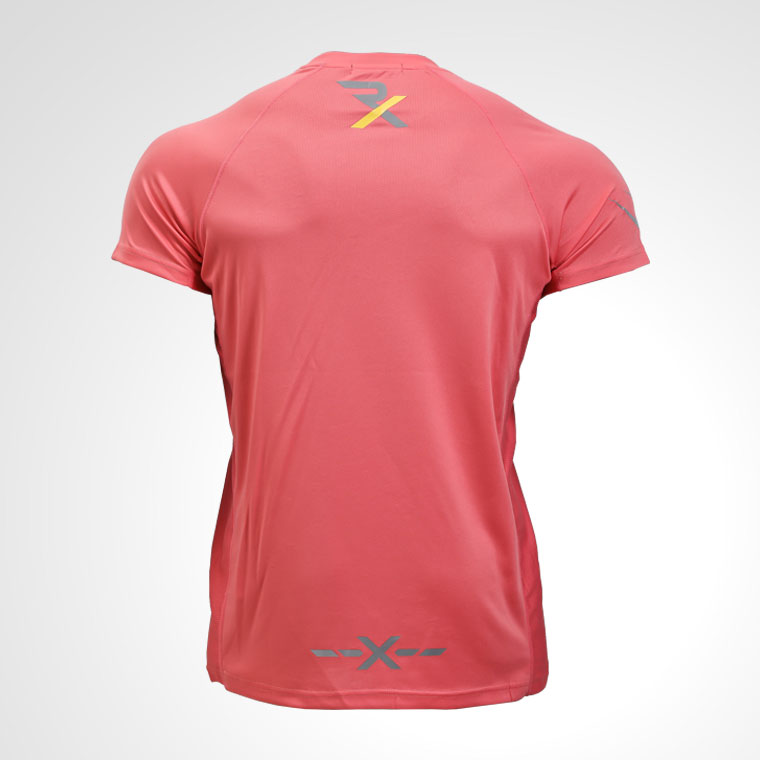 後身頃のプリントは、夜間のランニングにも安全なリフレクタープリントを使用。
