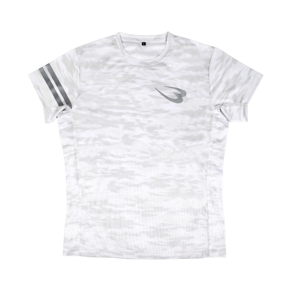 軽量で速乾性に優れたドライ素材なので汗をかいてもすぐに乾き、さらりとして肌触りが良く爽やかで快適な着心地が持続します。同系色濃淡のカモフラージュ柄を昇華プリントで表現しました。