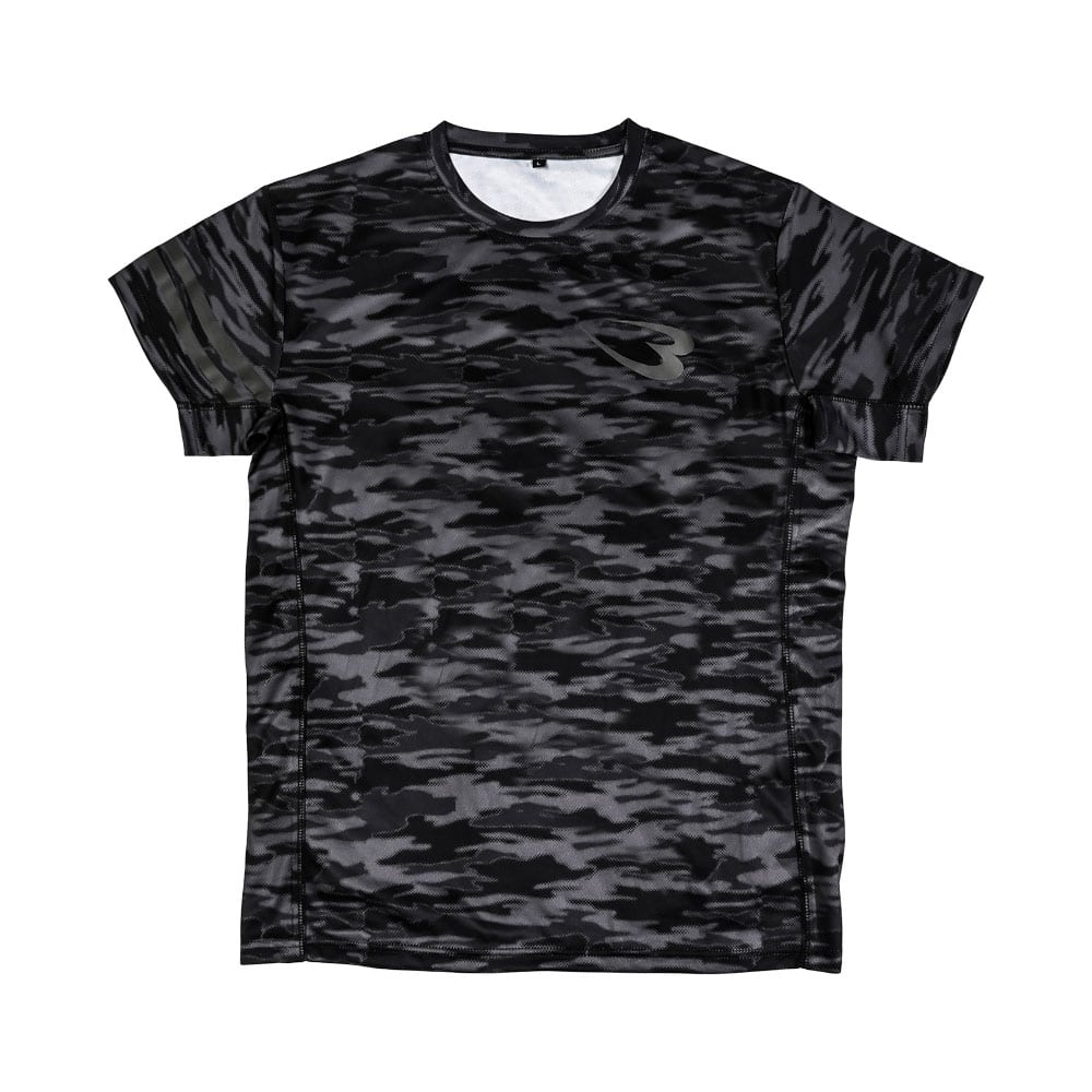 軽量で速乾性に優れたドライ素材なので汗をかいてもすぐに乾き、さらりとして肌触りが良く爽やかで快適な着心地が持続します。同系色濃淡のカモフラージュ柄を昇華プリントで表現しました。