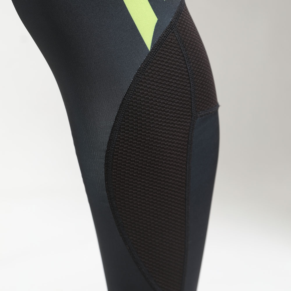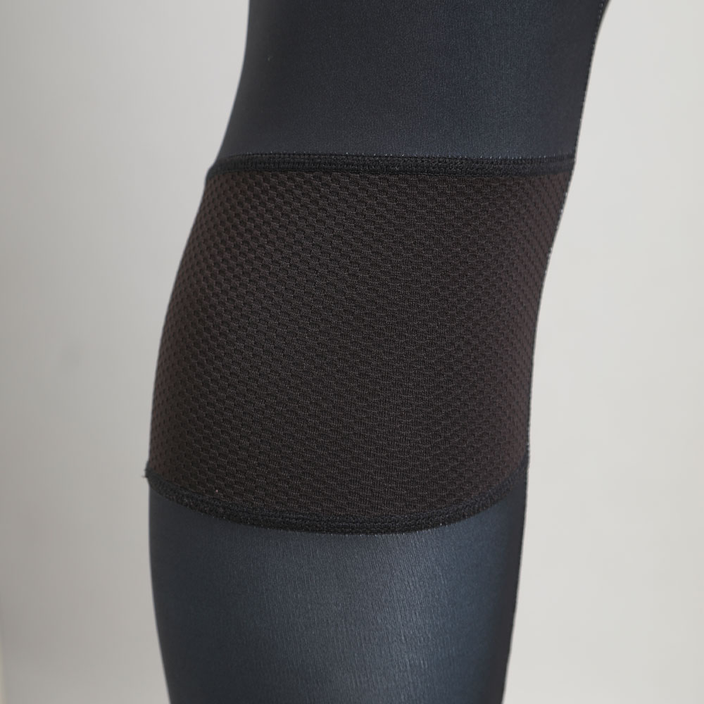 また、ウエストゴム下と膝の裏側には、メッシュ生地で切り替えており、通気性があり、最高のパフォーマンスをアシストします。