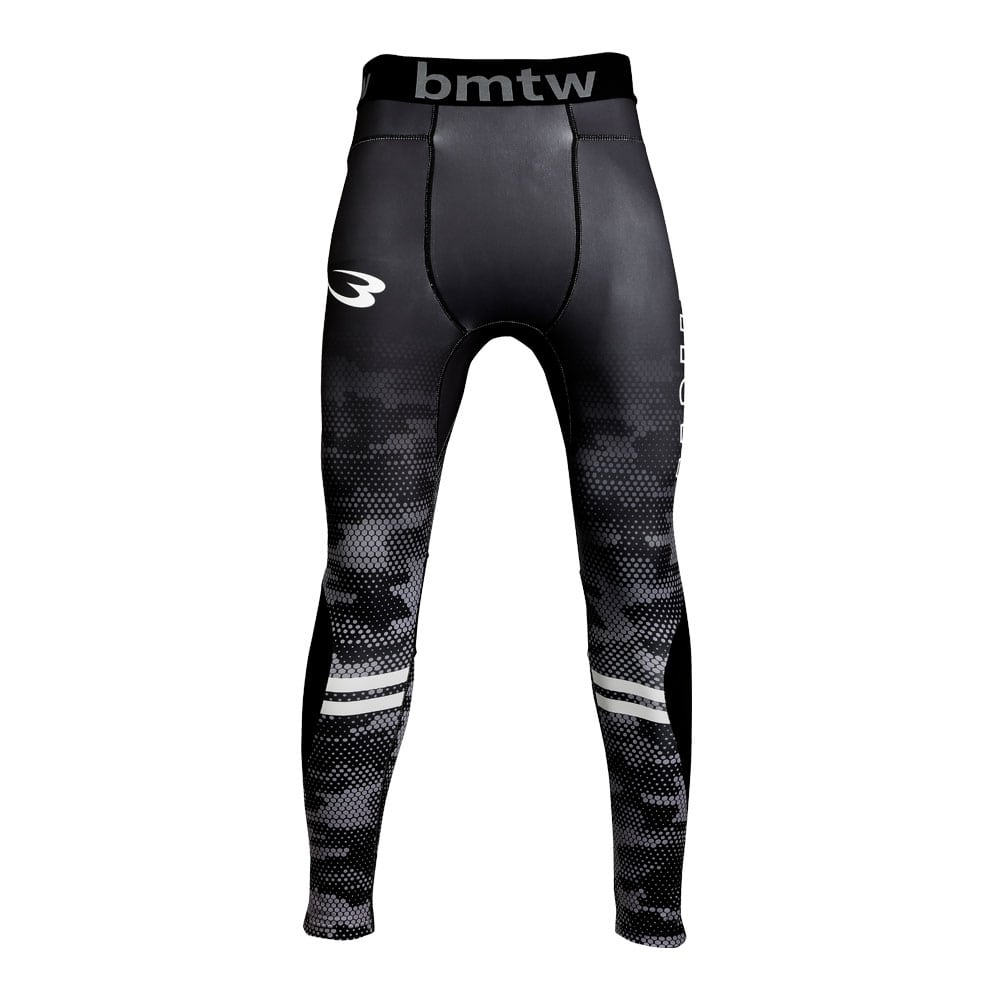 デジタルカモフラージュをモチーフにした昇華プリント。黒のぼかしを上手く使い、グラフィックに表現しました。両袖に「bmtw」のアイコンである2本ラインを配置。背中に「bmtw」のロゴ。