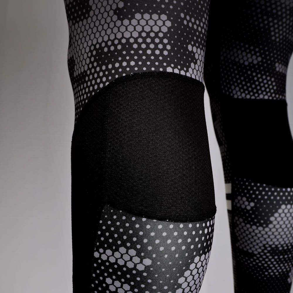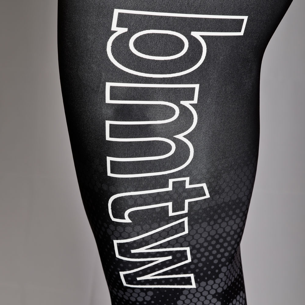 デジタルカモフラージュをモチーフにした昇華プリント。黒のぼかしを上手く使い、グラフィックに表現しました。両袖に「bmtw」のアイコンである2本ラインを配置。右袖口に「bmtw」のロゴ。