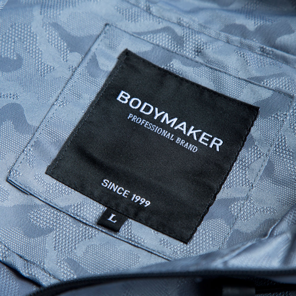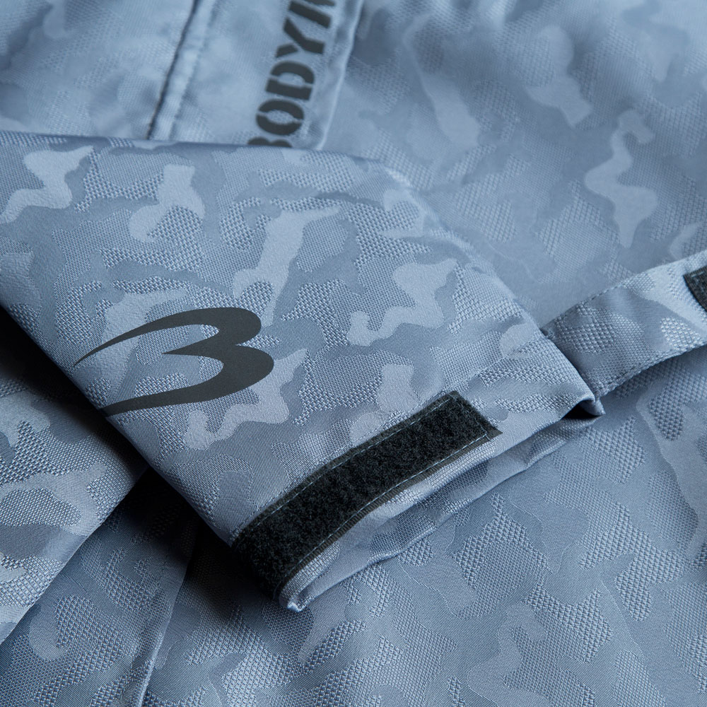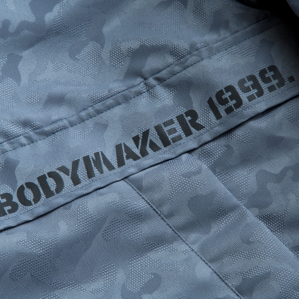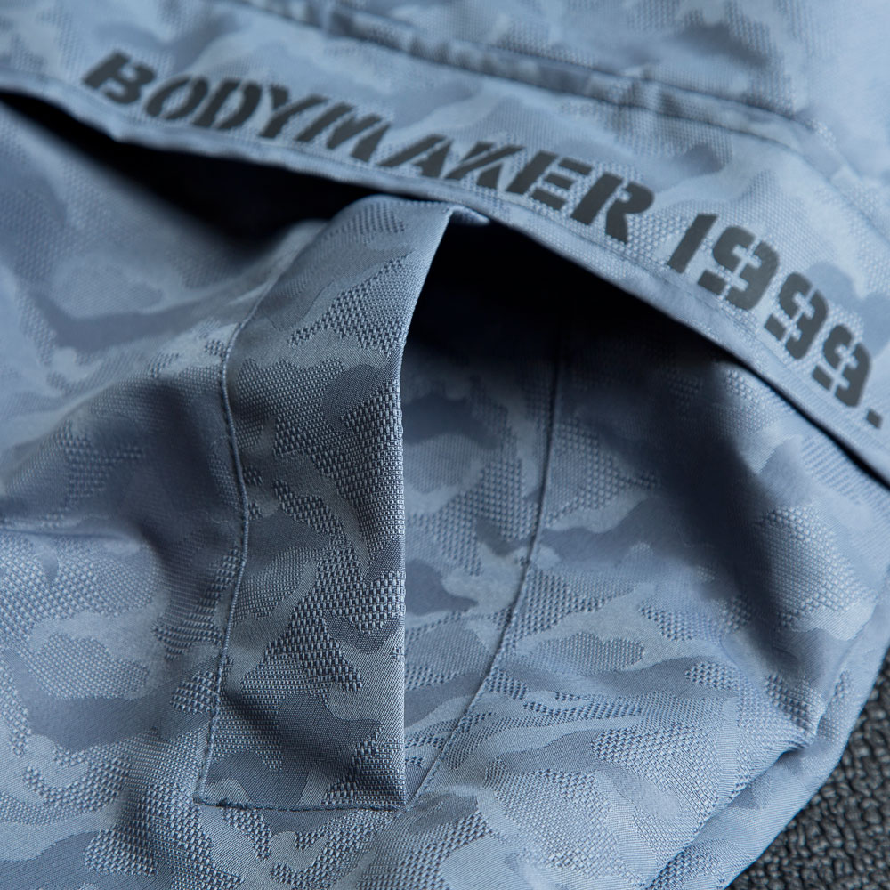カモフラ柄を織り込んだ後染めジャガード生地で仕立てたプルオーバータイプのブルゾン。