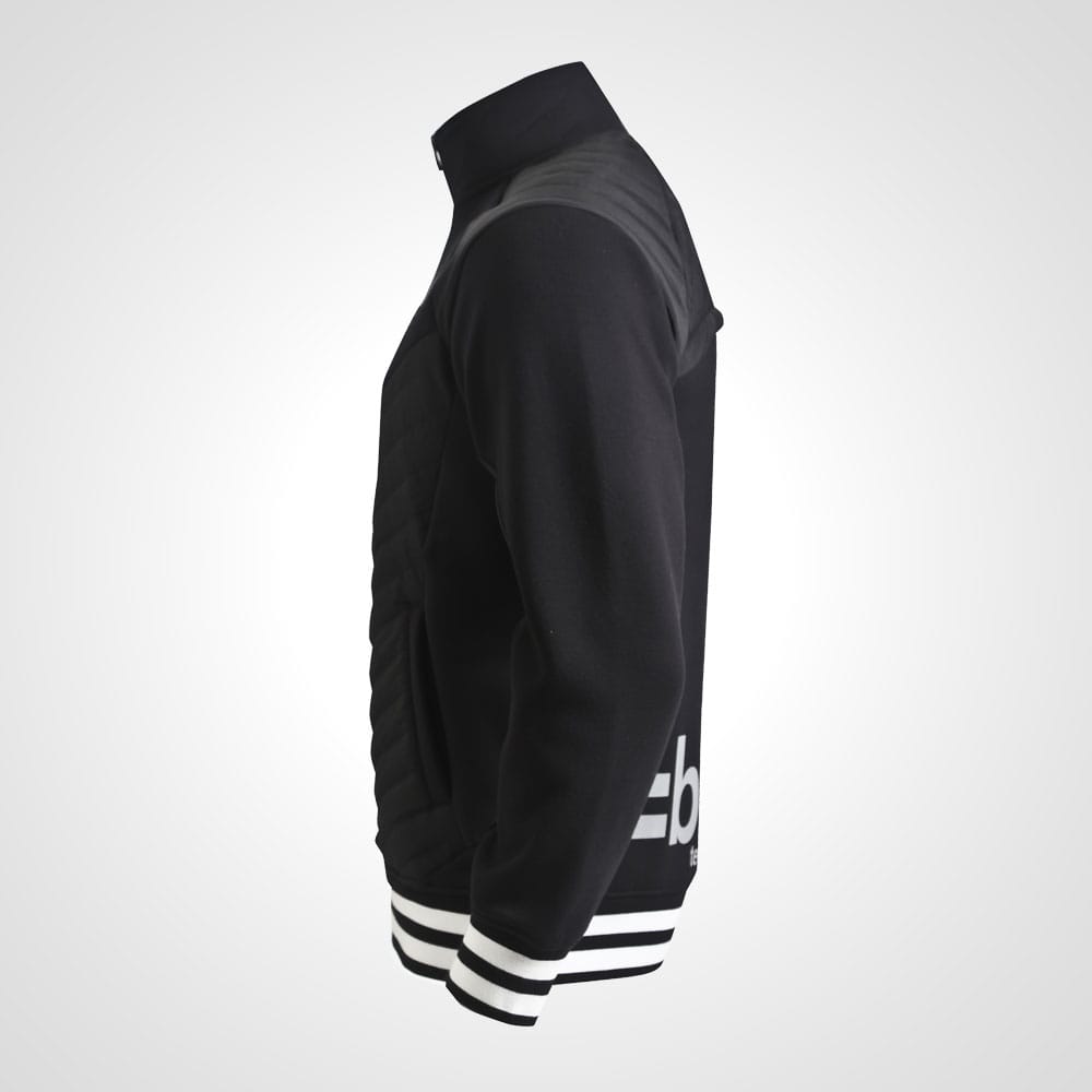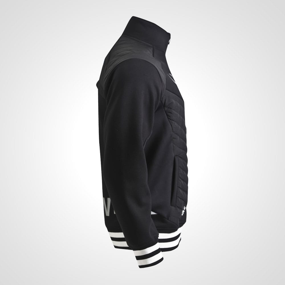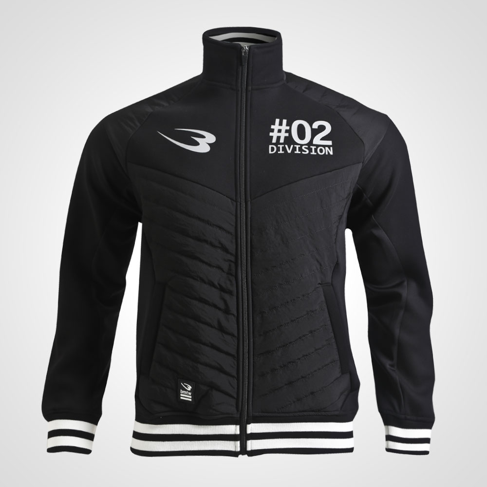 ストレッチ性のあるジャージ生地と暖かく柔らかいフリース生地をボンディングした生地を使用したウォーミングアップパーカー。