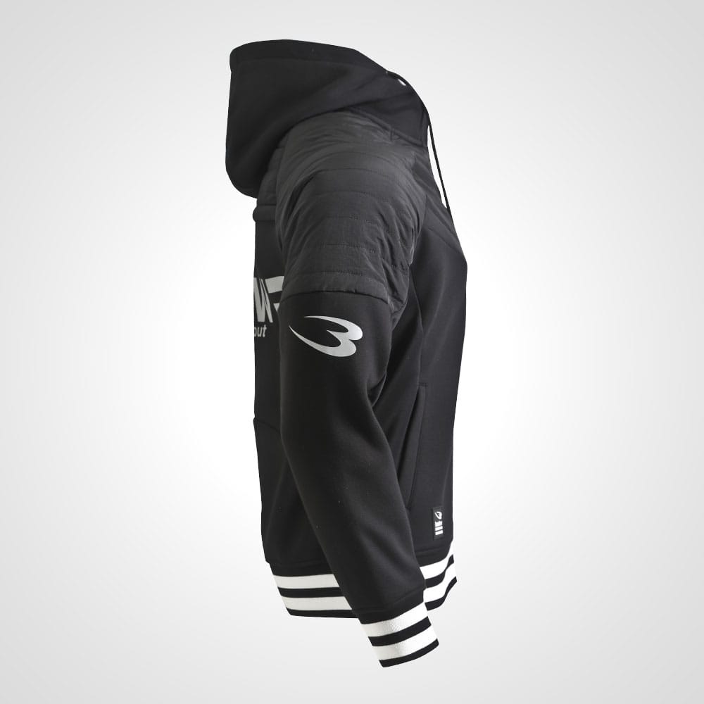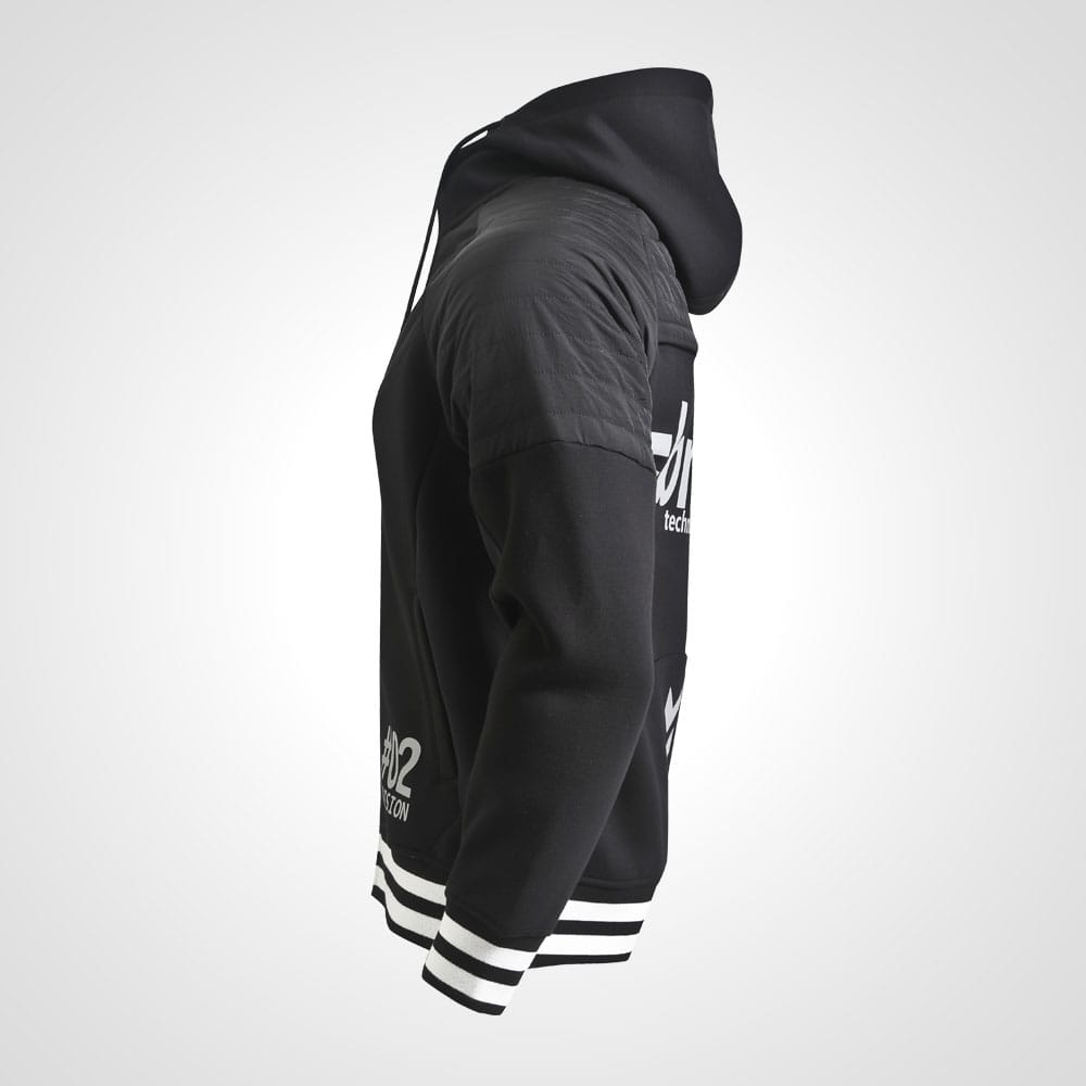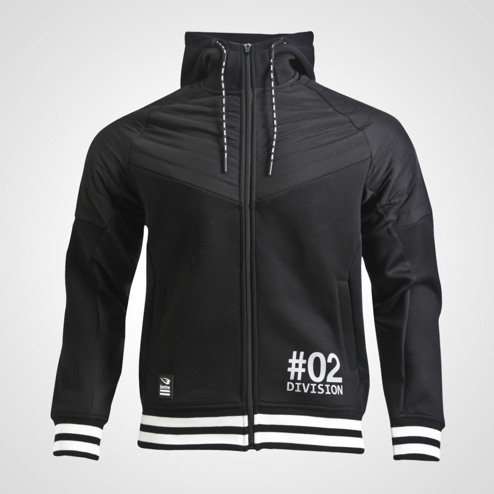 ストレッチ性のあるジャージ生地と暖かく柔らかいフリース生地をボンディングした生地を使用したウォーミングアップジャケット。