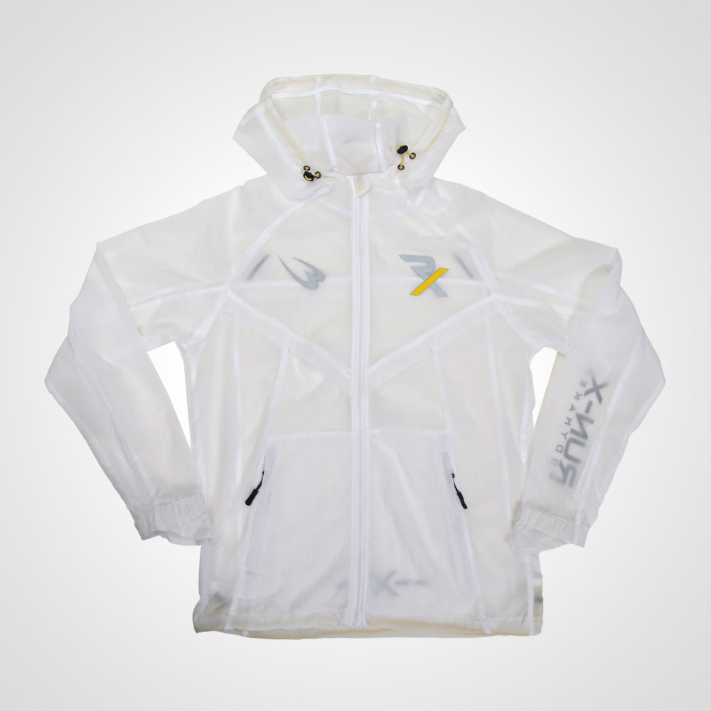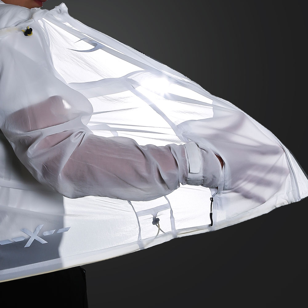 ロゴ等プリントには反射材を使用。日が沈んだあとも周囲にあなたの存在をアピールして安全にランニングが出来ます。フードも大きめなのでヘルメットごと入るのもポイントです。