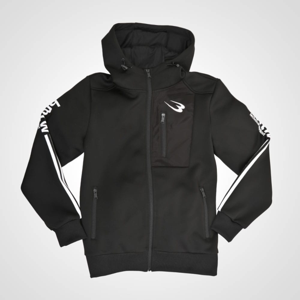 適度な肉感とハリがあり、やわらかな風合いが特徴的で防寒対策も考慮しています。袖のbmtwロゴがスポーティなデザイン。