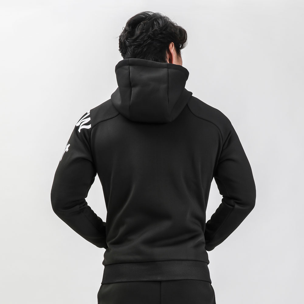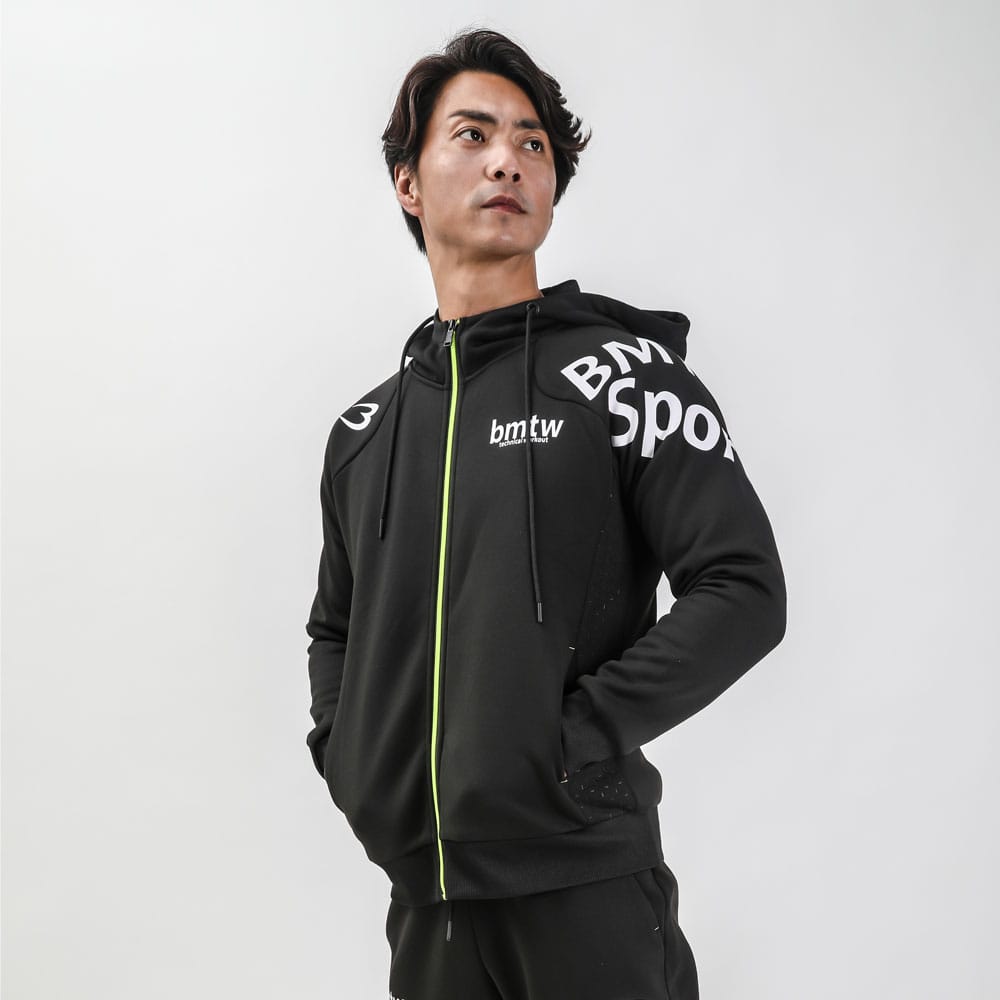 ストレッチ性のある裏起毛ジャージ生地を使用したトレーニングパーカー。