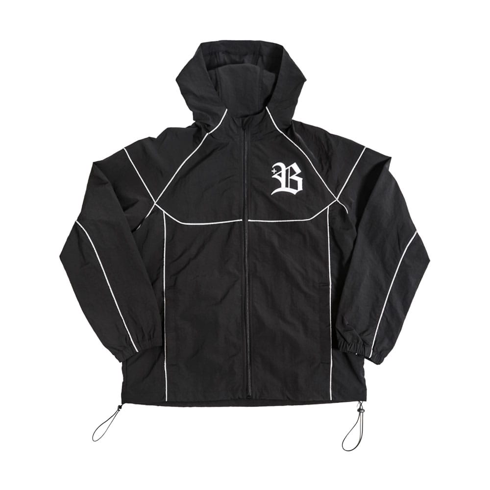 プラスB ナイロン トレーニング ジャケット パーカー ウォームアップ ワッシャー加工 シワ加工 パイピング仕様 軽い 防風