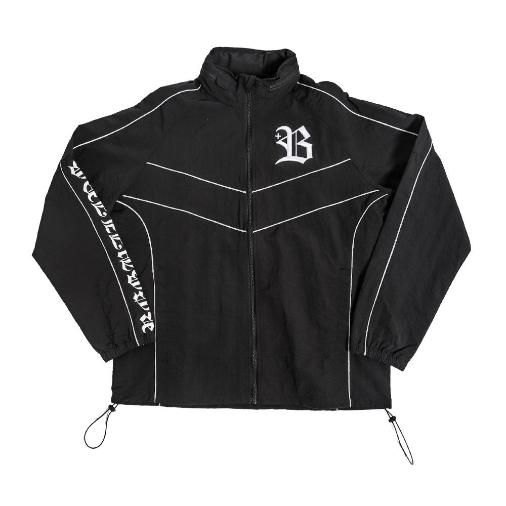 プラスB ナイロン トレーニング ジャケット パーカー ウォームアップ ワッシャー加工 シワ加工 パイピング仕様 軽い セットアップ トレーニング ロングパンツ