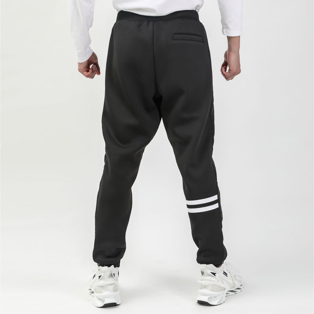 シワ感のある独特な風合いのナイロンワッシャー素材を採用。張りのある生地で耐久性と防風性を兼ね備えた優れもの。裏地はメッシュ仕様。軽やかな着心地ながらライトアウター感覚で着用できる程よいワイドシルエットが特徴のロングパンツです。右ポケット下に「+B」ロゴ、左ポケット下にはシリコンバッジ。両脇の切り替えにはゴシックの文字プリント。右脚に2本ラインを入れスポーツミックススタイルに仕上げました。裾は、今流行りのちょっと長めに出したドローコードで絞れる仕様で、トレーニング時はストレスフリー。トレーニングやウォーミングアップのみならず、タウンユースでも活躍できるアイテムです。程よいオーバーサイズなシルエットはトレンド感があり、リラクシングさせてくれます。