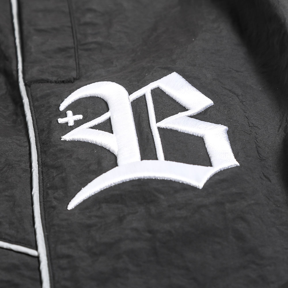 プラスB ナイロン トレーニング ジャケット パーカー ウォームアップ ワッシャー加工 シワ加工 パイピング仕様 軽い 防風