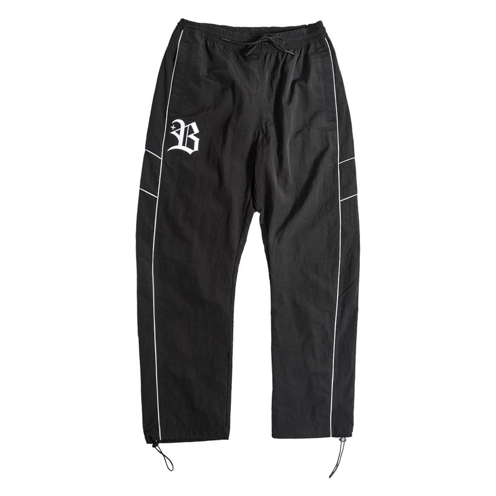 プラスB ナイロン トレーニング ロングパンツ ウォームアップ ワッシャー加工 シワ加工 パイピング仕様 軽い 防風 ジムウエア