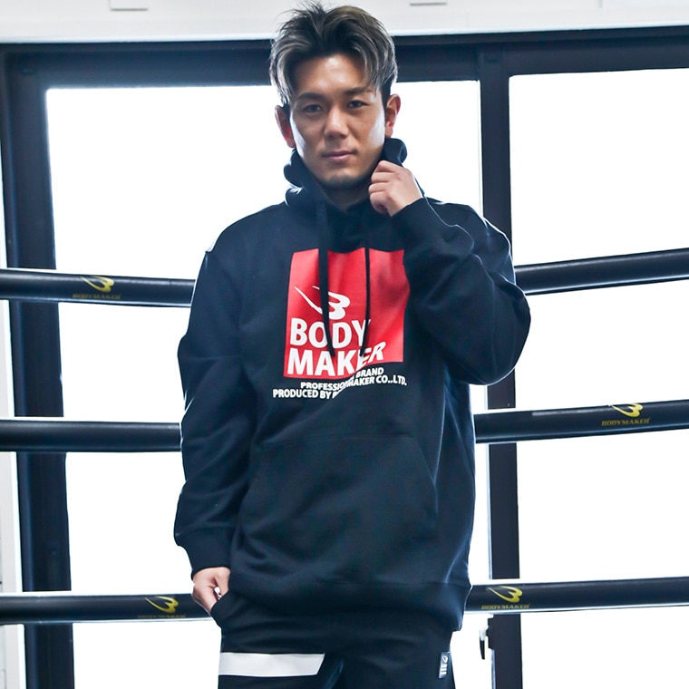 前身頃にSQUAREにBODYMAKERのLOGOを入れ、後身頃には大胆に「BODY」の文字を大きく斜めにプリントしました。