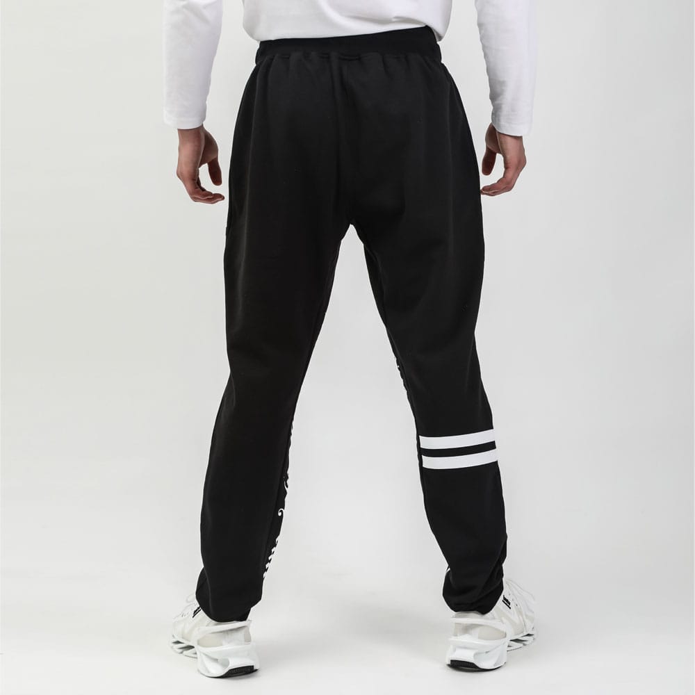 独自の裏起毛素材を使用することで、保温性を高め寒い季節でも快適に着用していただけます。また、肉厚のボリュームのある素材感は、保温性さけでなく軽くてしっかりとして、綿とポリエステル・ポリウレタン素材なので、運動中の汗を素早く吸収し、ドライな状態に保ってくれます。右ファスナーポケット下に「+B」のロゴプリント。左ファスナーポケット下には「+B」のシリコンバッジ。そして、その下には2本のブラックラインをプリント。右脚に白の2本ラインプリント。両脚の内側を切り替え、ゴシックの文字プリント。黒を基調に白のプリントで「+B」の世界観を演出しています。裏起毛素材なので、寒い季節のトレーニングやウォーミングアップのみならず、タウンユースでも活躍できるロングパンツです。オーバーサイズなシルエットはトレンド感があり、リラクシングさせてくれます。