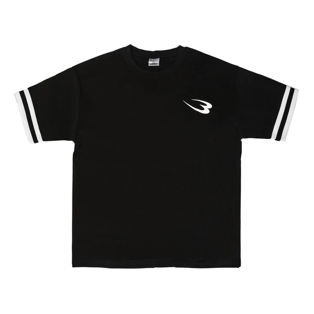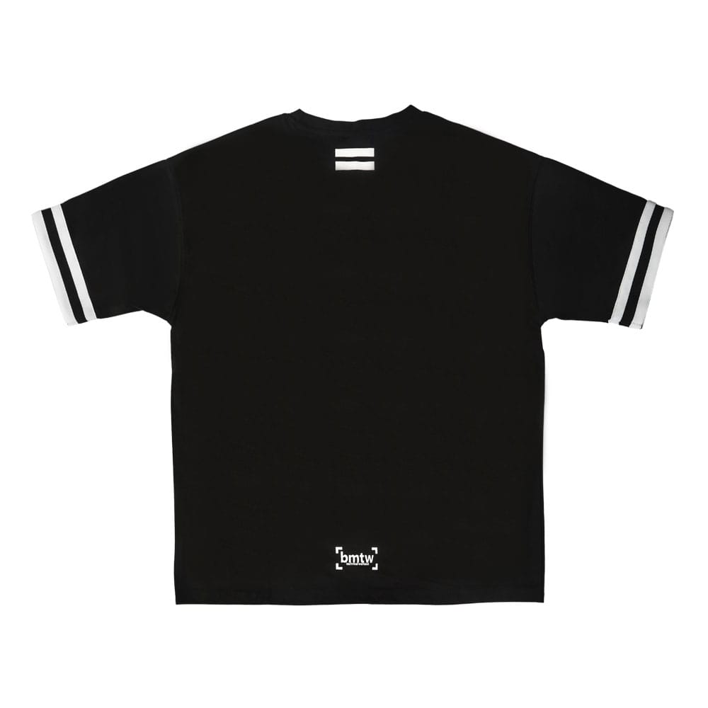 左胸に「Bロゴ」プリント。前右裾に「bmtwロゴ」プリント。両袖と後身頃裾に「bmtw」のアイコンでもある2本ラインをプリント。後身頃衿下にプリントで2本ライン。
