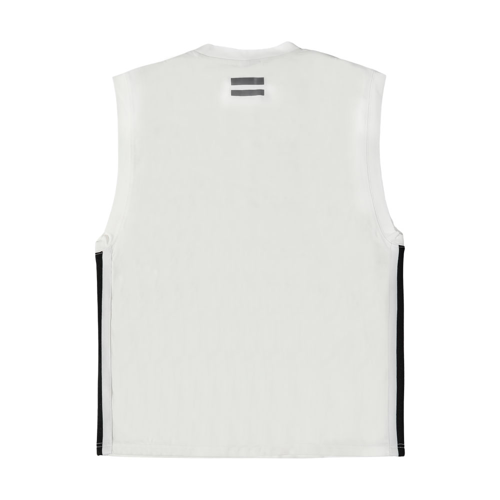 薄手のスウェット感覚で着用することができ、着心地が抜群のスウェット生地とスポーティなデザインが融合し、トレーニングのみならず、1枚でのラフなスタイルからタウンユースまで幅広いファッションにマッチするデザインがポイント。程よい肩幅のノースリーブは、脇線にニットテープを叩き付けて、スポーツミックススタイルに仕上げました。