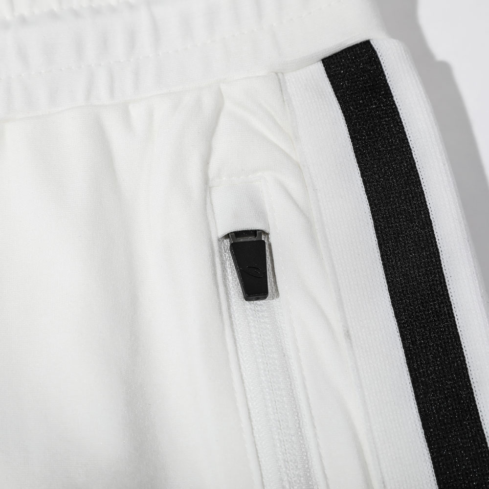 昨年、好評だった新感覚スウェット素材「シルキースウェット」が再登場。しかも今シーズンから、トップスも展開中。カラーもホワイトが加わりブラックと2色展開。適度なハリ感と精密でなめらかな表面、シルクのような肌触りが特徴の生地です。また、昨年の生地より少し軽くすることで更に着やすくしました。ゆとりを持たせたリラックスフィットのサイズ感が自由に着こなせます。薄手のスウェット感覚で着用することができ、穿き心地が抜群のスウェット生地とスポーティなデザインが融合し、トレーニングのみならず、1枚でのラフなスタイルからタウンユースまで幅広いファッションにマッチするデザインがポイント。バスケットパンツにインスパイアされて、ニットテープを裾に叩きつけたワンランクアップのパンツ。