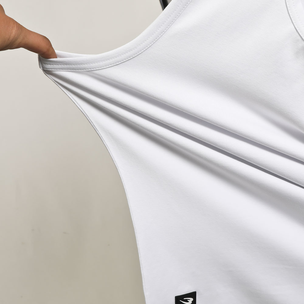アームホールを大きく開け、トレーニング時の動きを妨げず快適な運動性を高めています。