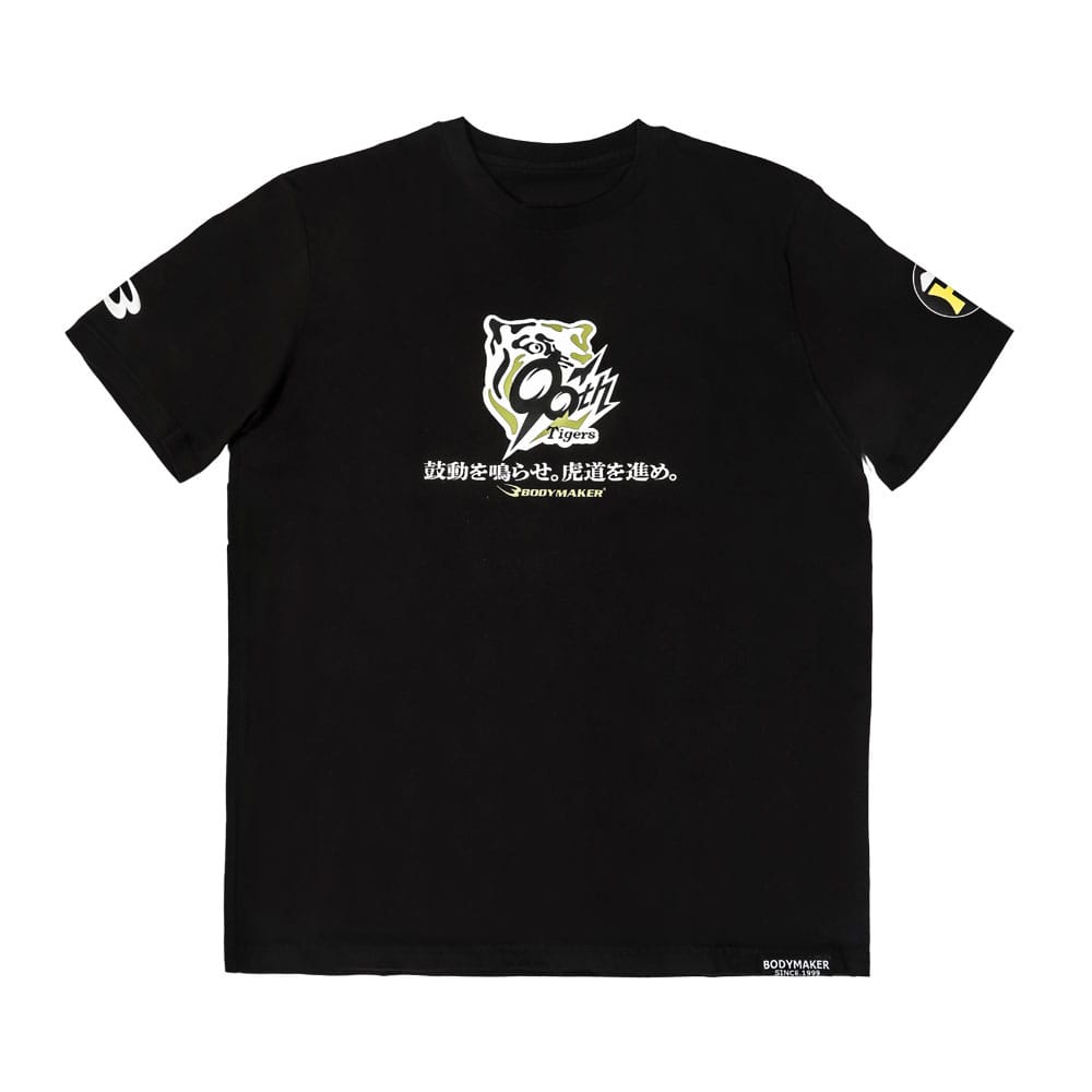 胸に「HANSHIN Tigers」のロゴと「BODYMAKER」のロゴをかけ合わせたオリジナルのマーク。