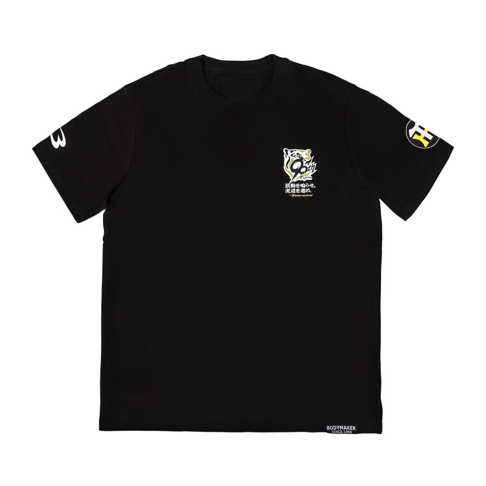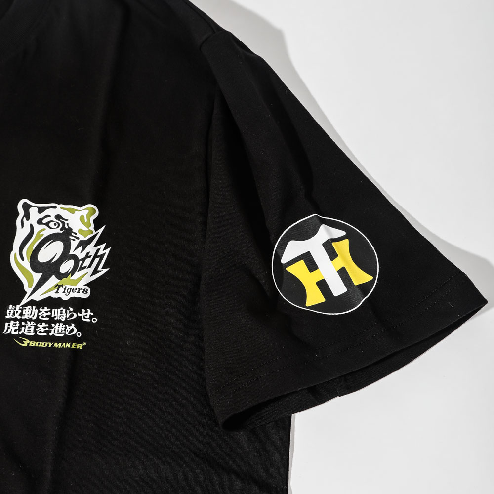 胸に「HANSHIN Tigers」のロゴと「BODYMAKER」のロゴをかけ合わせたオリジナルのマーク。