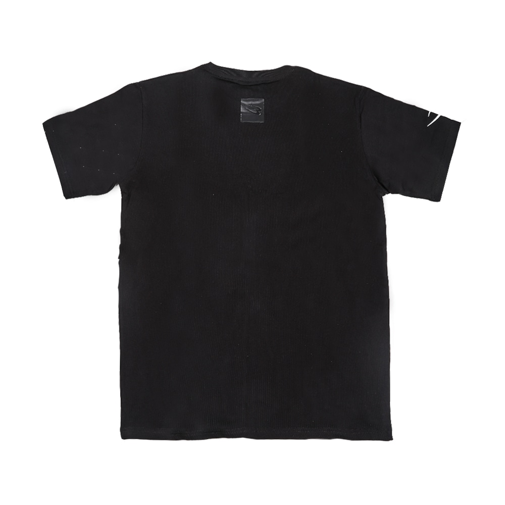 右袖の立体シリコンロゴと左裾のピスネームが、細部にブランドのこだわりを感じさせる。