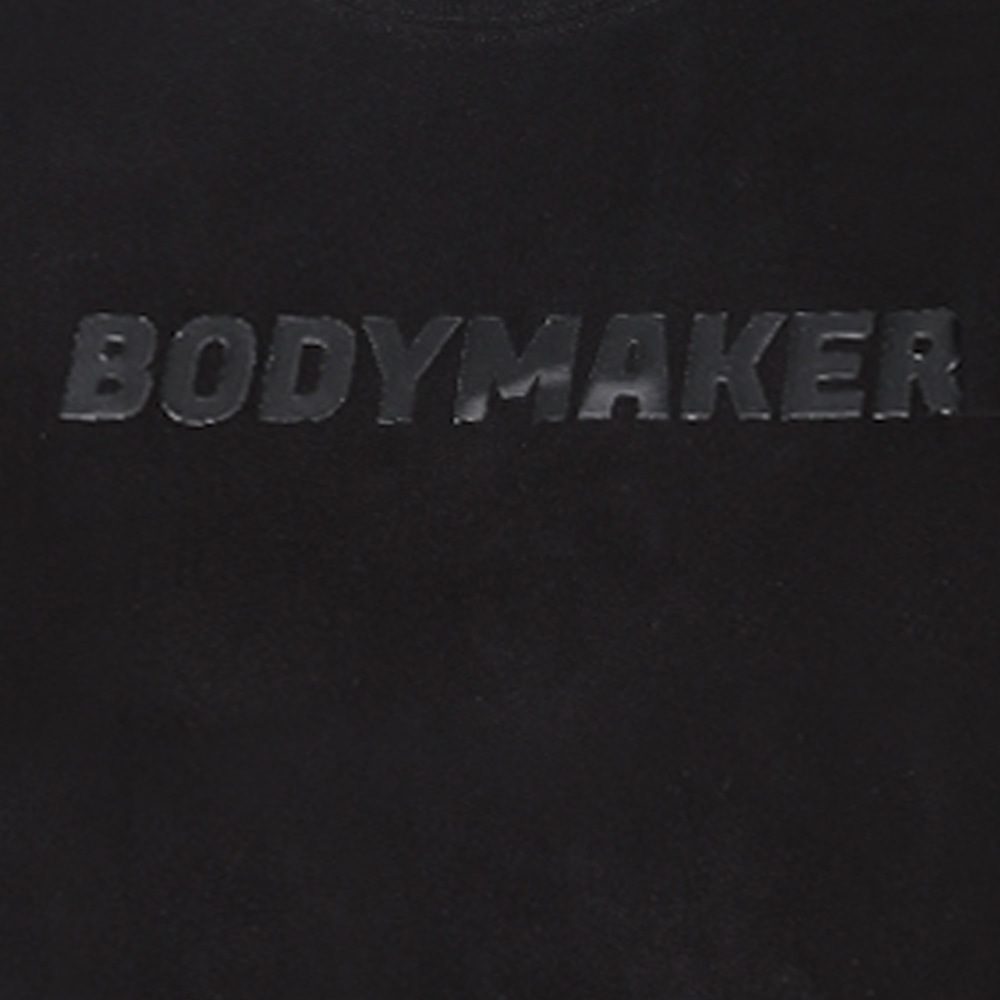 フロントに大きく配置されたBODYMAKERロゴは、エナメルのような光沢と質感が特徴。